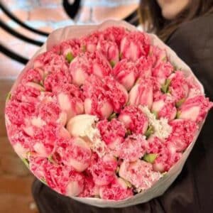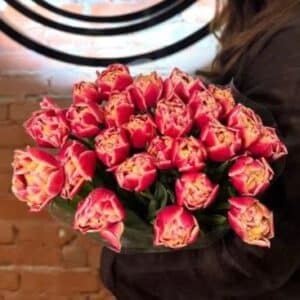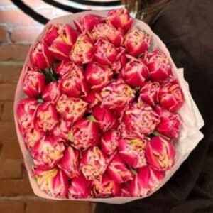 Пачка розовых махровых тюльпанов 50 шт без сборки