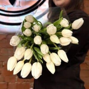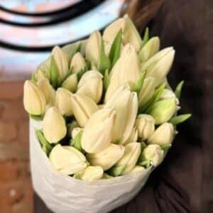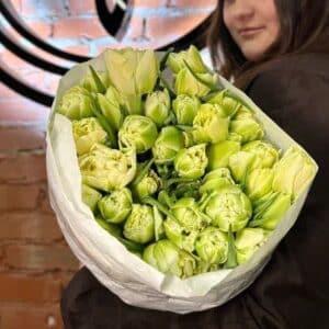 Пачка бело-зеленых тюльпанов 50 шт без сборки