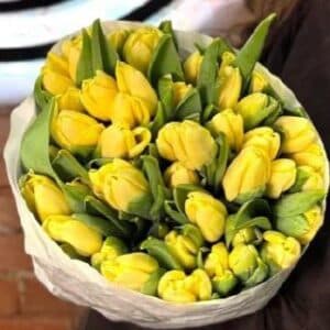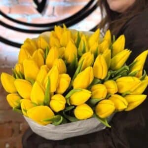 Пачка ярко желтых тюльпанов 50 шт без сборки