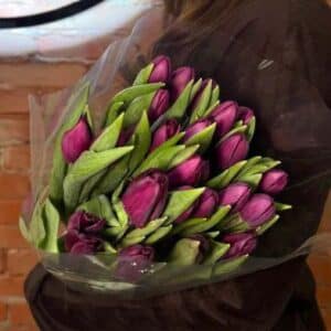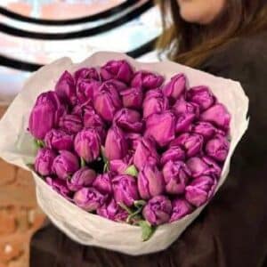 Пачка фиолетовых тюльпанов 50 шт без сборки
