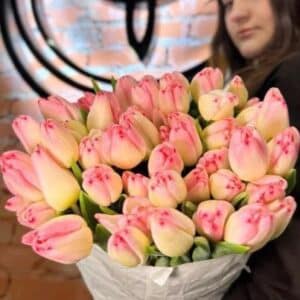 Пачка розово-белых тюльпанов 50 шт без сборки