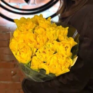 Пачка махровых желтых тюльпанов 25 шт без сборки