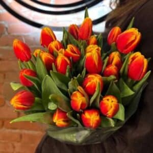 Пачка красно-желтых тюльпанов 25 шт без сборки