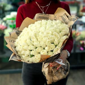 101 белая Роза в букете