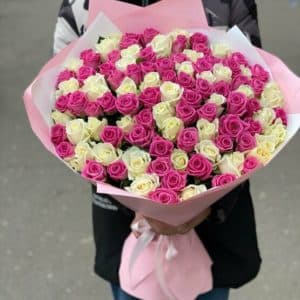 101 бело-розовая роза
