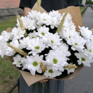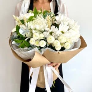 Букет Белых Хризантем в дизайнерской упаковке