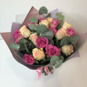 Букет с розами и альстромерией