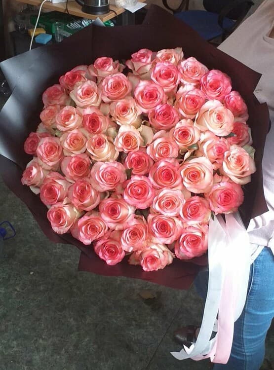 51 джамилия розы упаковка матовая плёнка, лента атласная