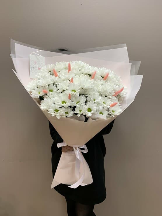 Хризантема кустовая - 9; Лагурус - 6; Дизайнерская упаковка - 7