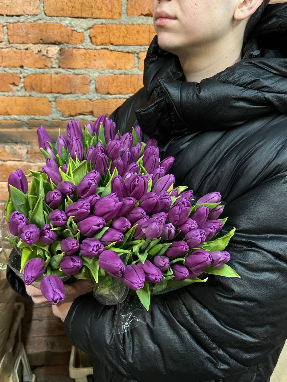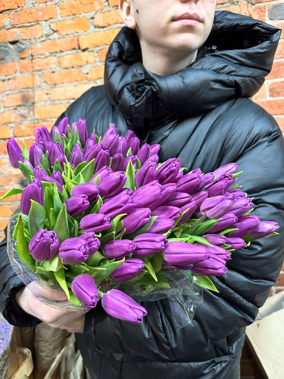 100 тюльпанов "ФИОЛЕТ" в пачке [без сборки] Голландия PREMIUM в Москве