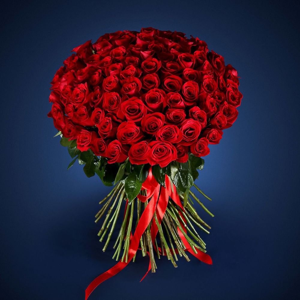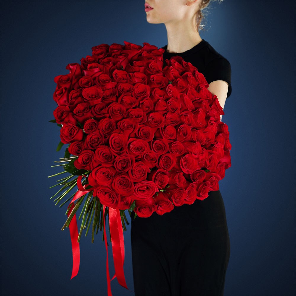 Роза Эквадор - 101 шт. Лента шелк - 5 шт.