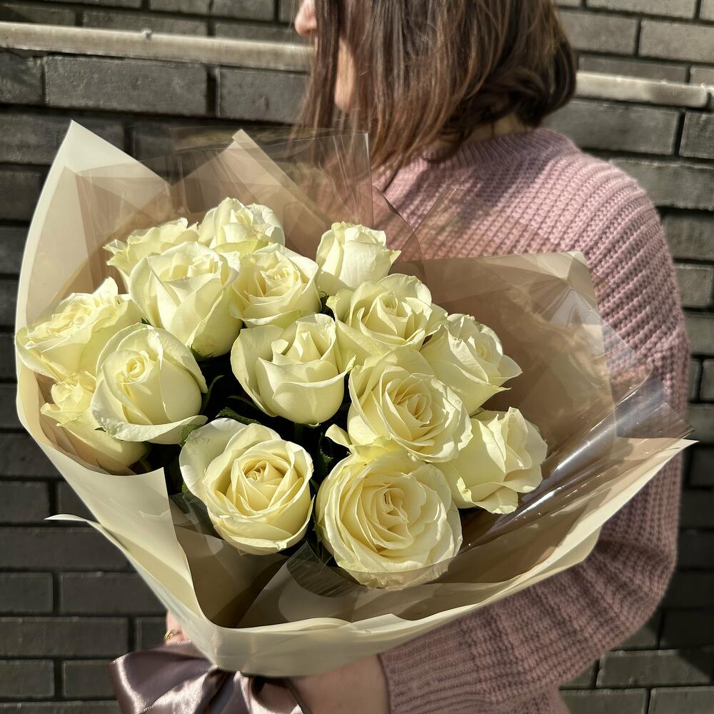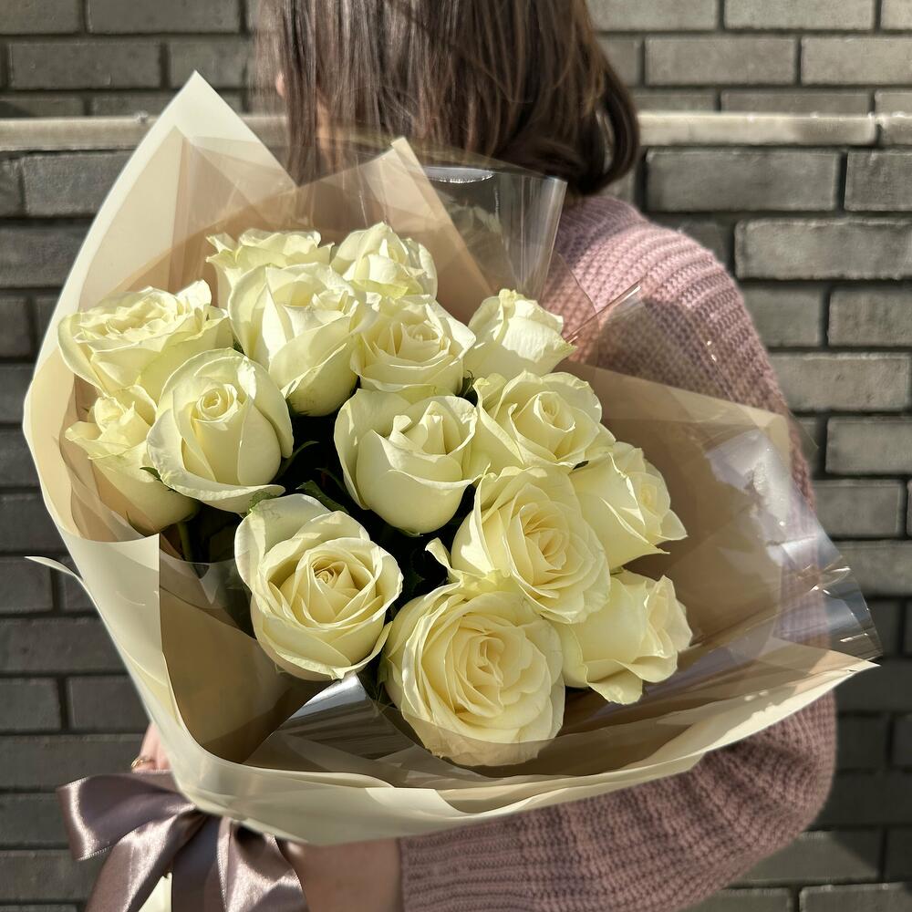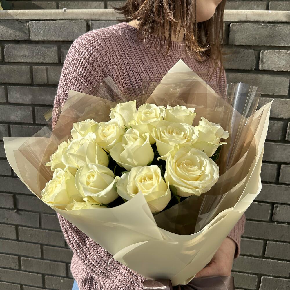 15 Белых роз в дизайнерской упаковке