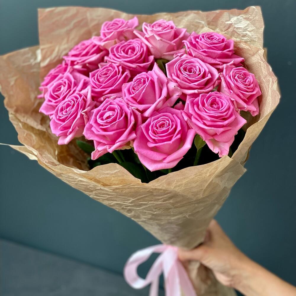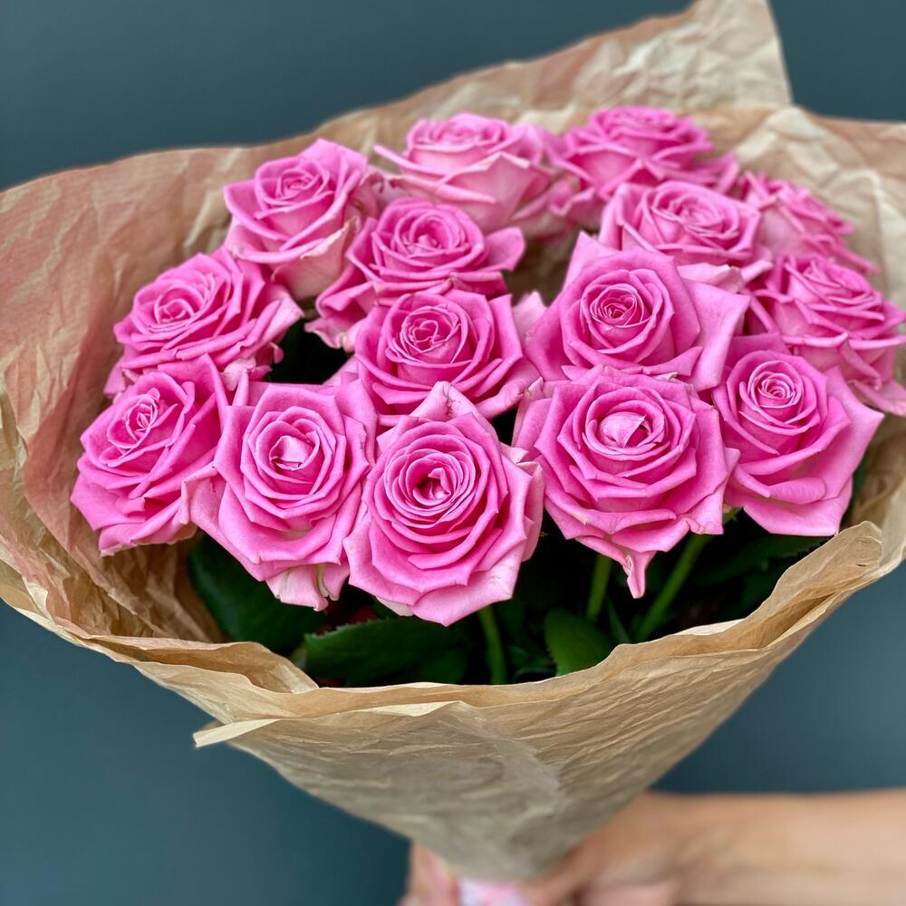15 нежно-розовых роз в мятом крафте ☺️ просто и со вкусом
