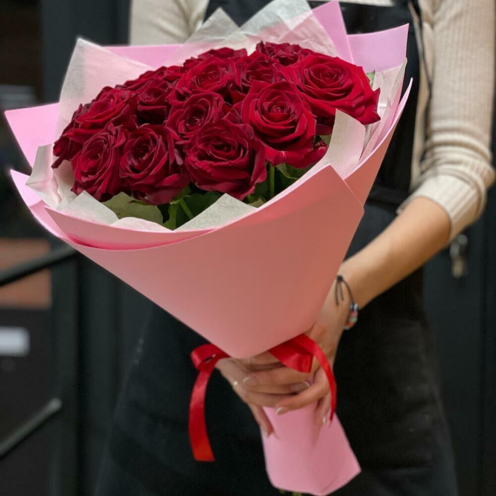 Лента – 1 шт. Роза – 19 шт. Матовая пленка – 3 шт.