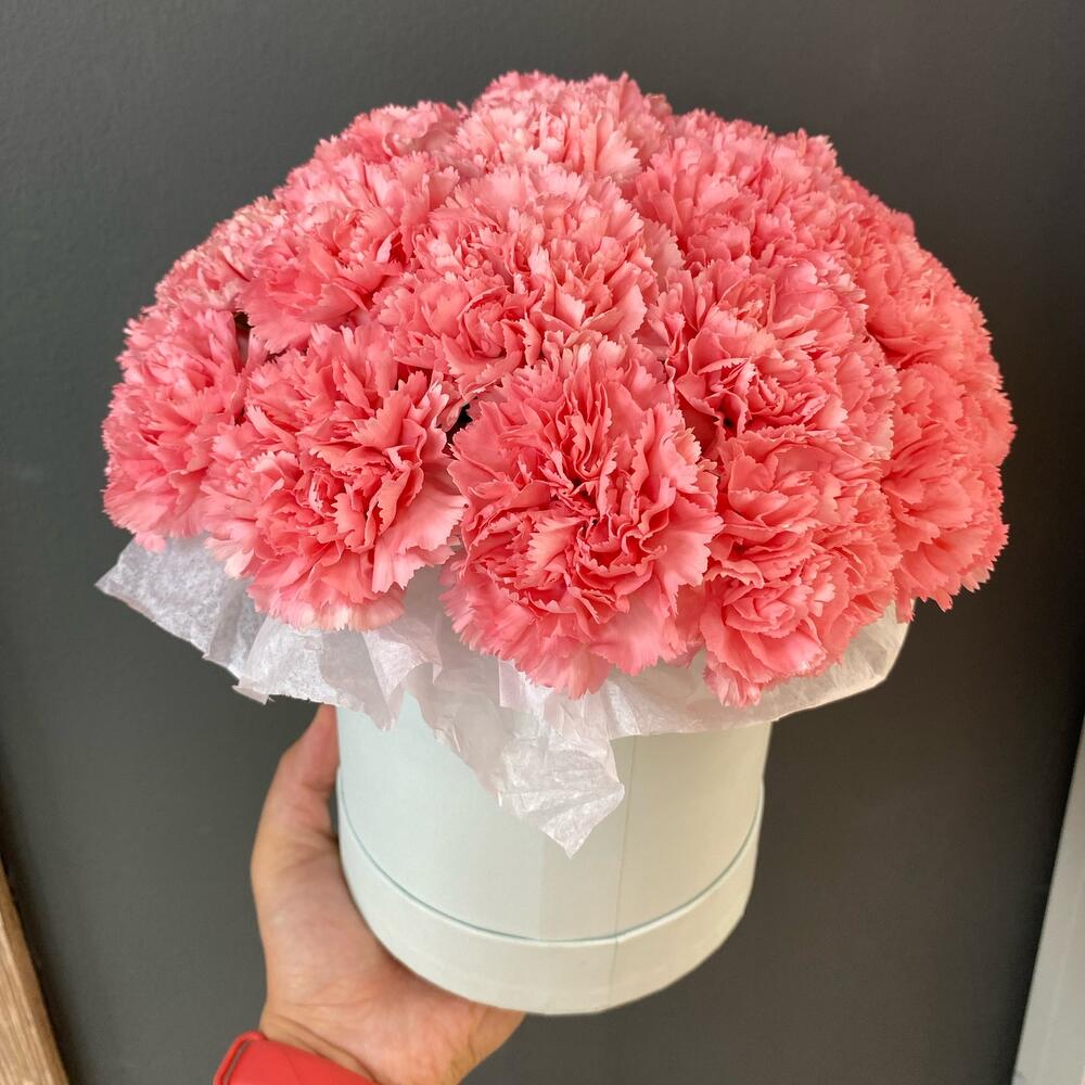 25 диантусов в шляпной коробке