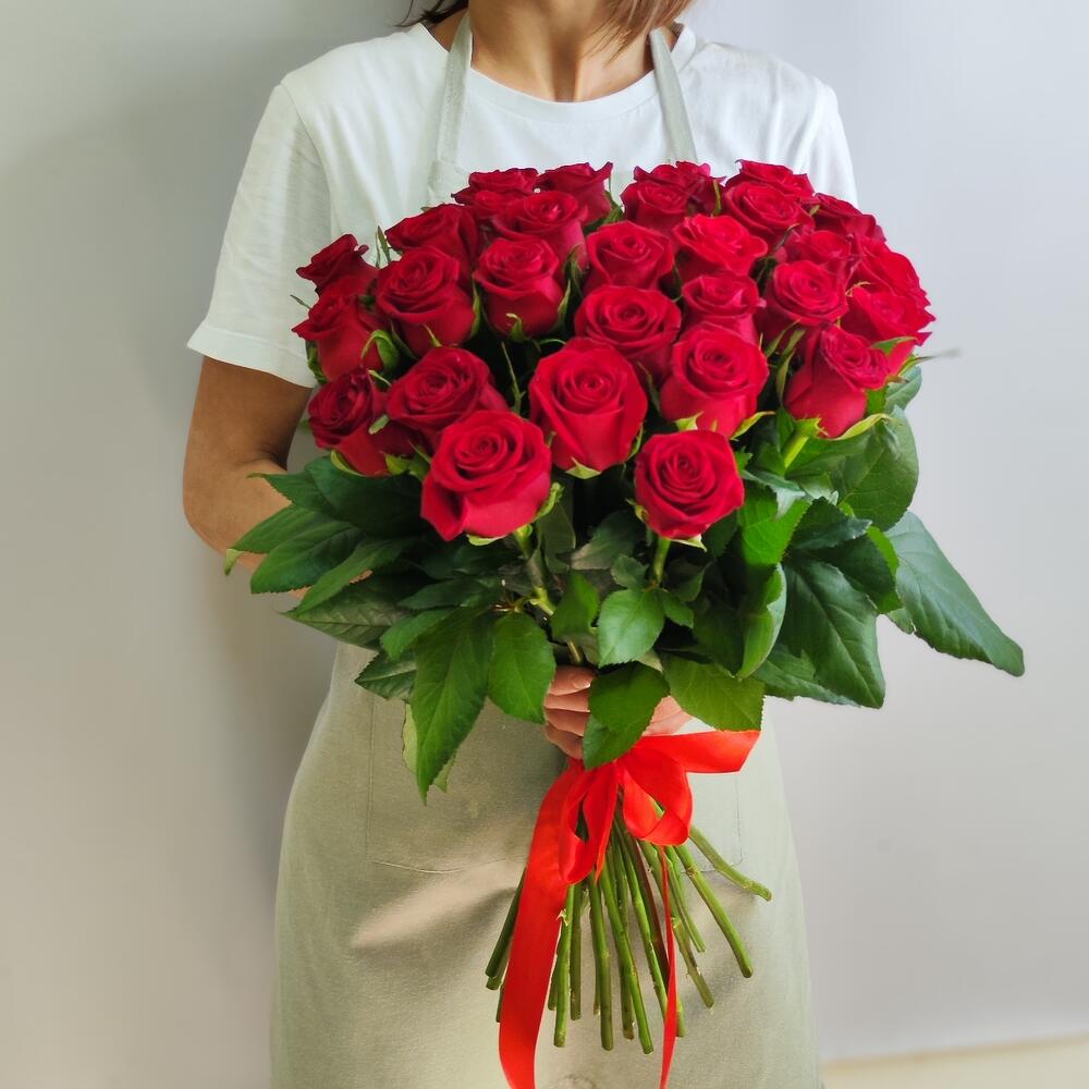 Лента атласная – 1 шт. Роза красная 50 см – 31 шт.