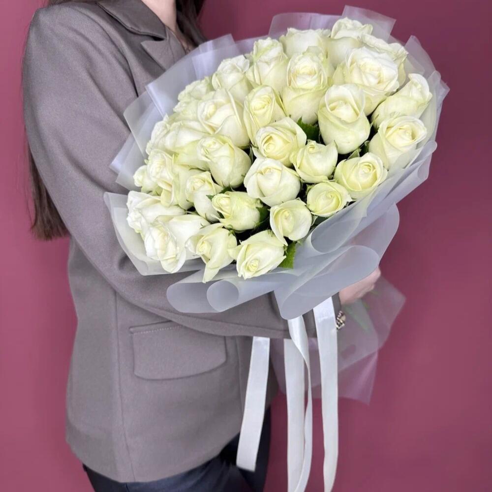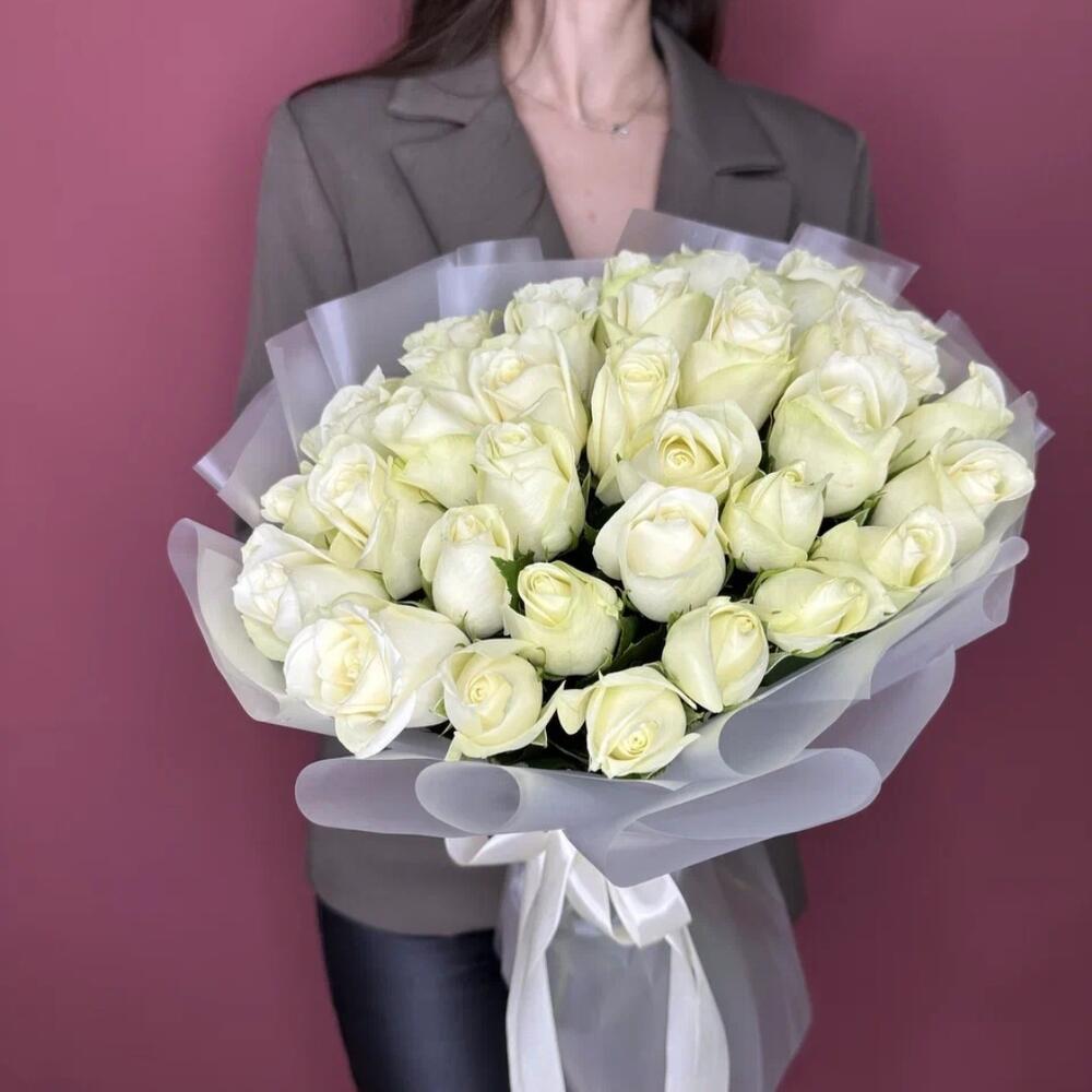 Роза – 35 шт. Лента атласная – 1 шт. Дизайнерская упаковка – 1 шт.