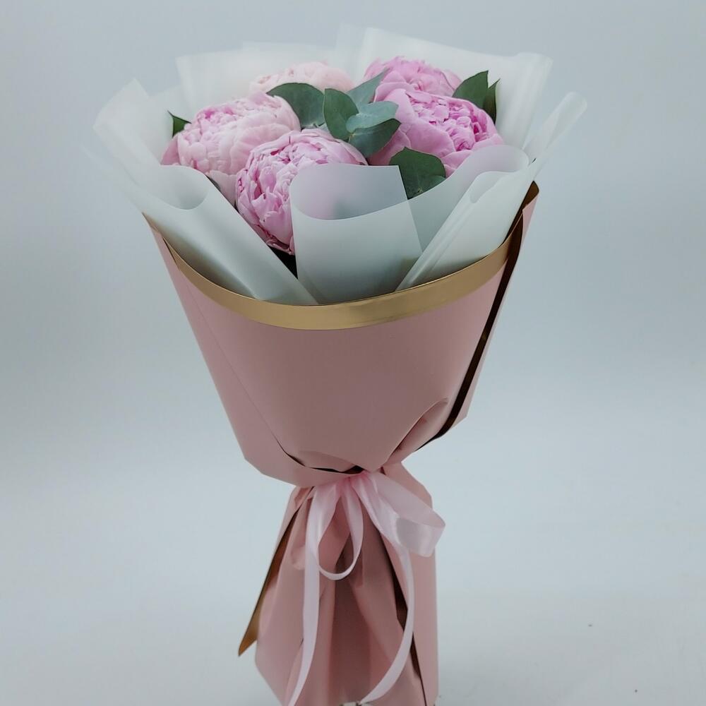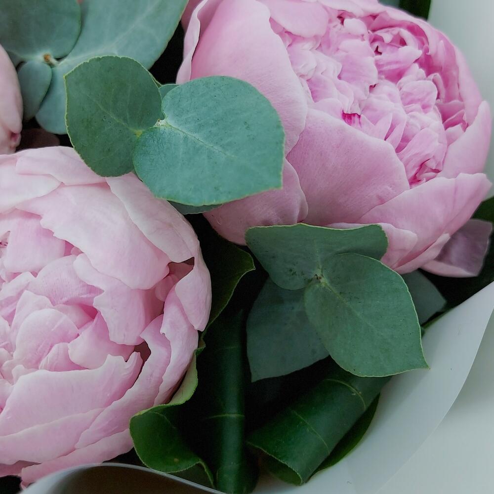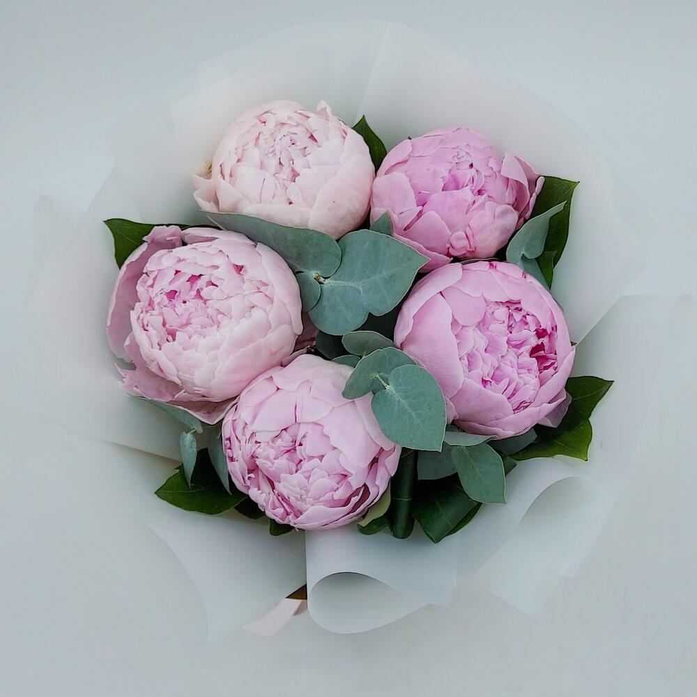 Пион – 5 шт. Эвкалипт – 5 шт. Упаковка дизайнерская – 1 шт.