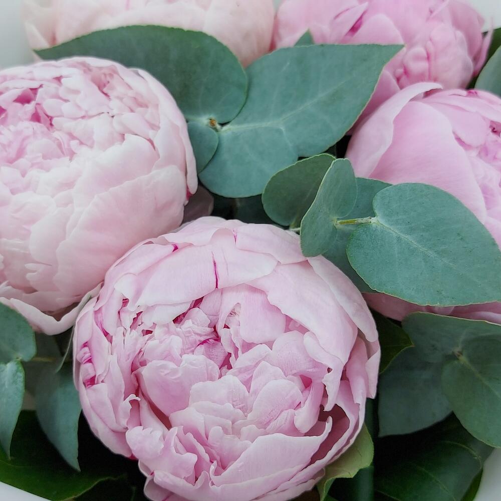 Букет из розовых пионов и веточек эвкалипта – это нежное и очень красивое сочетание, которое обладает особенной притягательностью. Розовые пионы символизируют любовь, сострадание, красоту и благородство. Эти цветы являются настоящей прелестью для глаз и невероятным украшением для любого интерьера.В свою очередь, веточки эвкалипта проверены временем и славятся своим мирным и успокаивающим действием. Они делают любую комнату более приятной и уютной и являются признанными символами спокойствия и гармонии.Такой букет, состоящий из розовых пионов и веточек эвкалипта, выглядит очень изящно и романтично. Его нежный аромат и пастельные цвета создают особую атмосферу и помогают расслабиться и снять стресс.