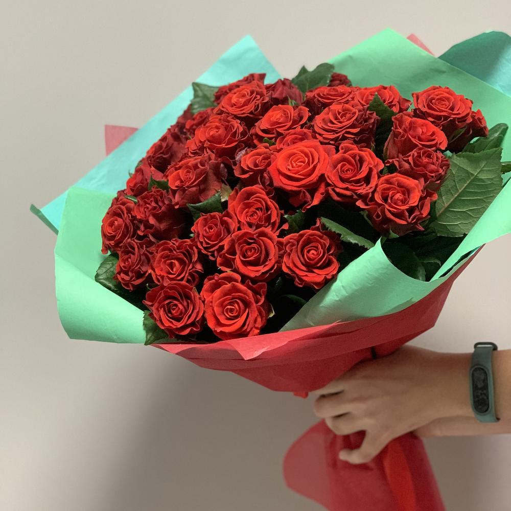 Алый насыщенный яркий букет роз!Интересные соцветия и вид бутона сделает этот букет особенным!Необычные завитки лепестков – особенность данного сорта! Кроме того он очень стойкий!!!Больше наших работ Вы всегда сможет найти на странице нашего магазина!