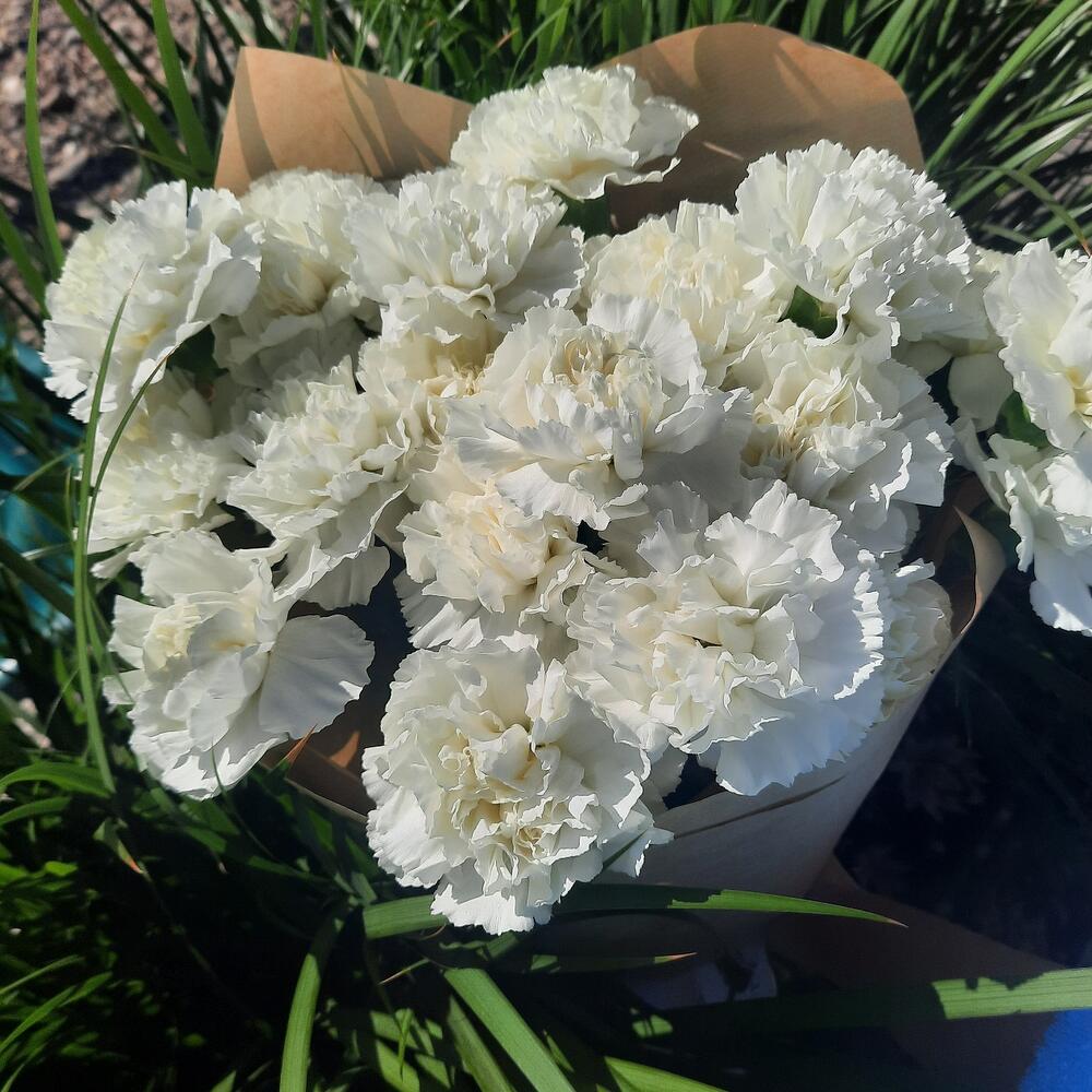 Лента атласная - 1 шт. Диантус - 23 шт. Кружево - 1 шт. Крафт упаковка - 2 шт. Кризал (подкормка) - 1 шт. Открыточка с вашими пожеланиями - 1 шт.