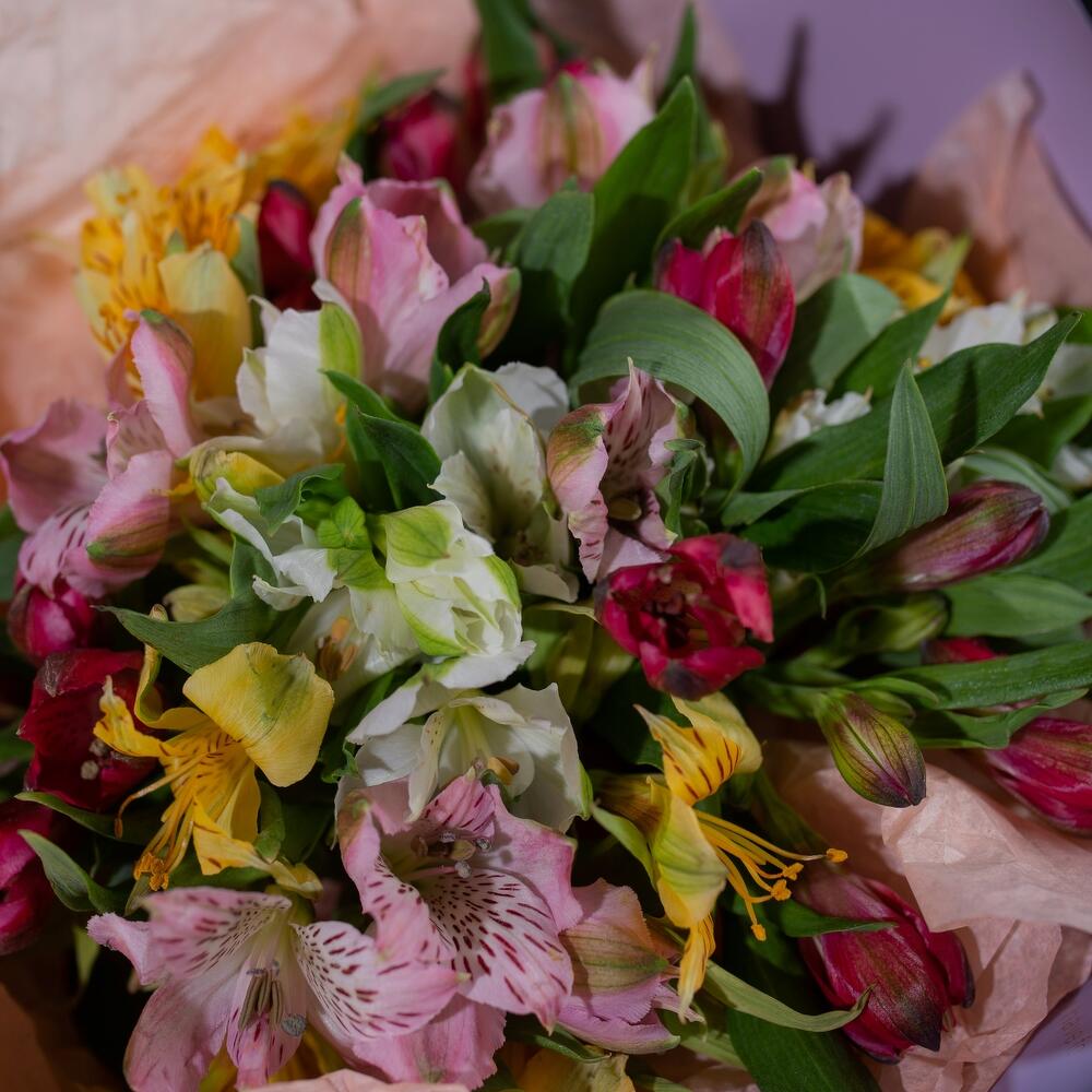 Яркий букет из альстромерий для вашего праздника. Альстромерия – один из самых стойких цветов с необычайной цветовой гаммой.