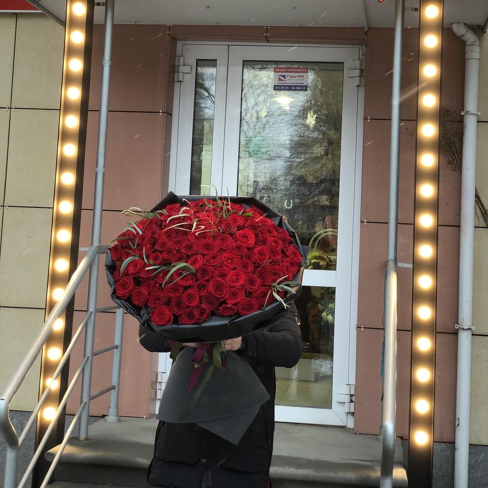 Огромный букет красный роз