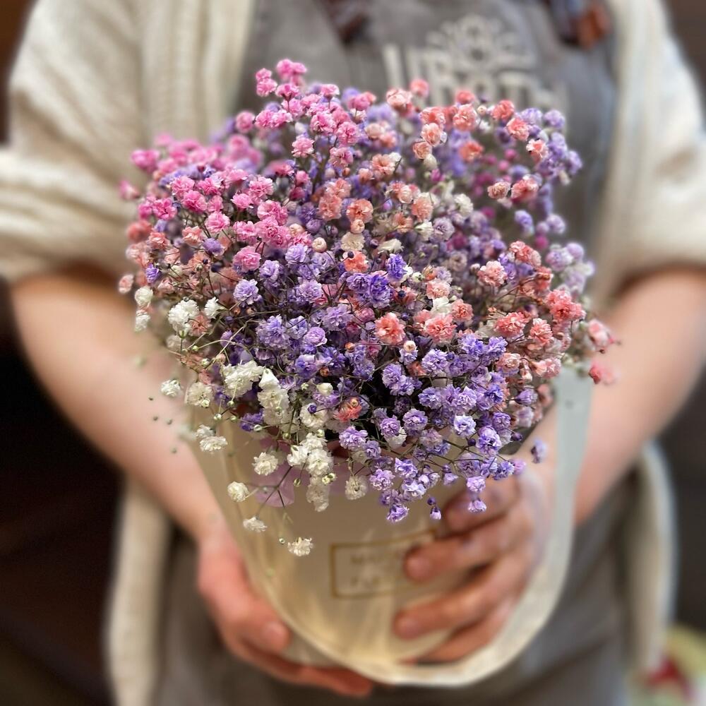 Гипсофила – 5 шт. Коробка – 1 шт. Оазис флористический – 1 шт.