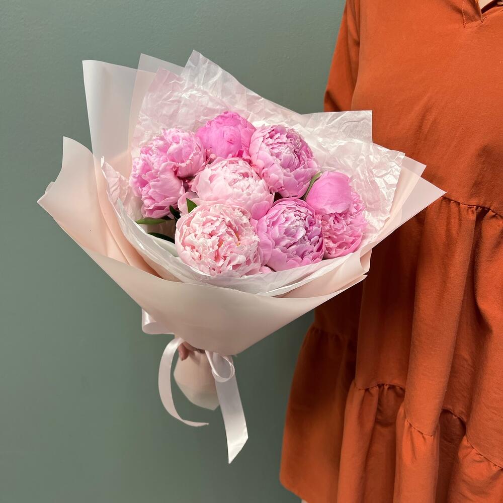 Букет 7 Розовых Пионов