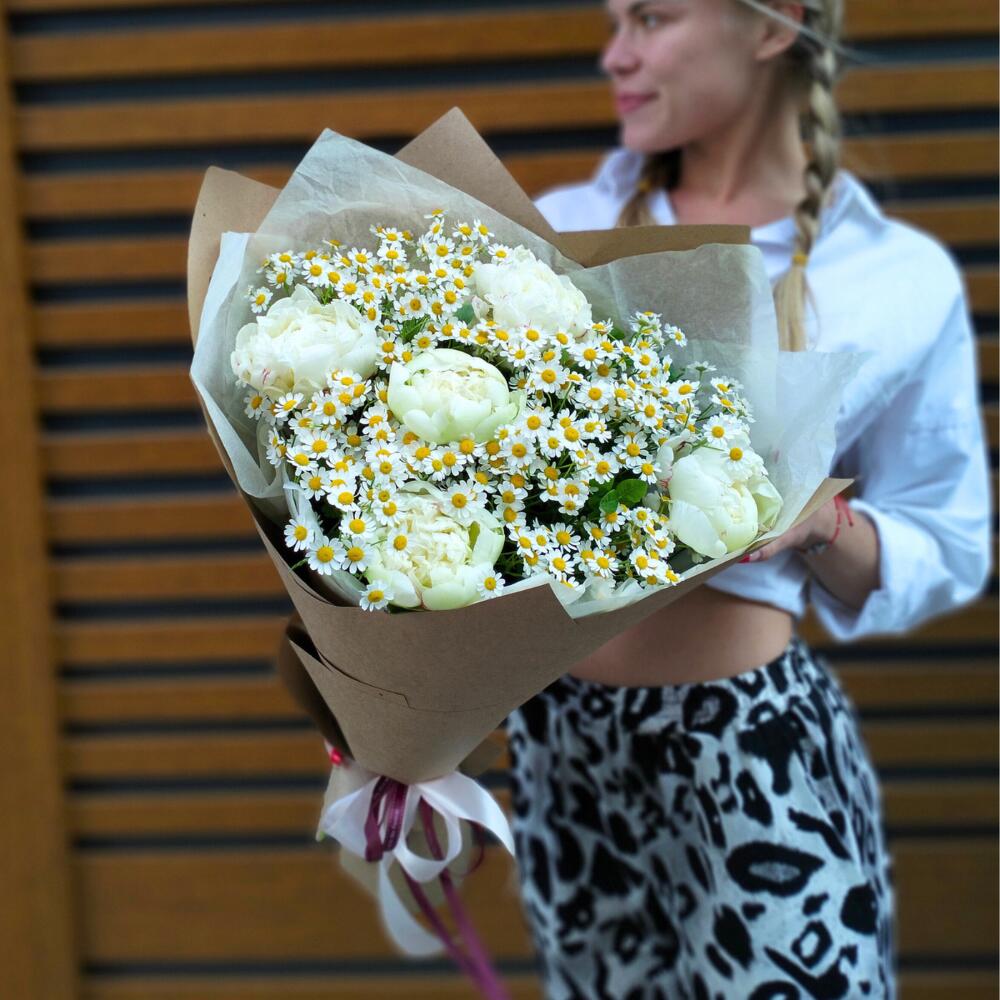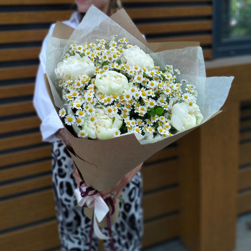 Букет Белых Пионов и Ромашек