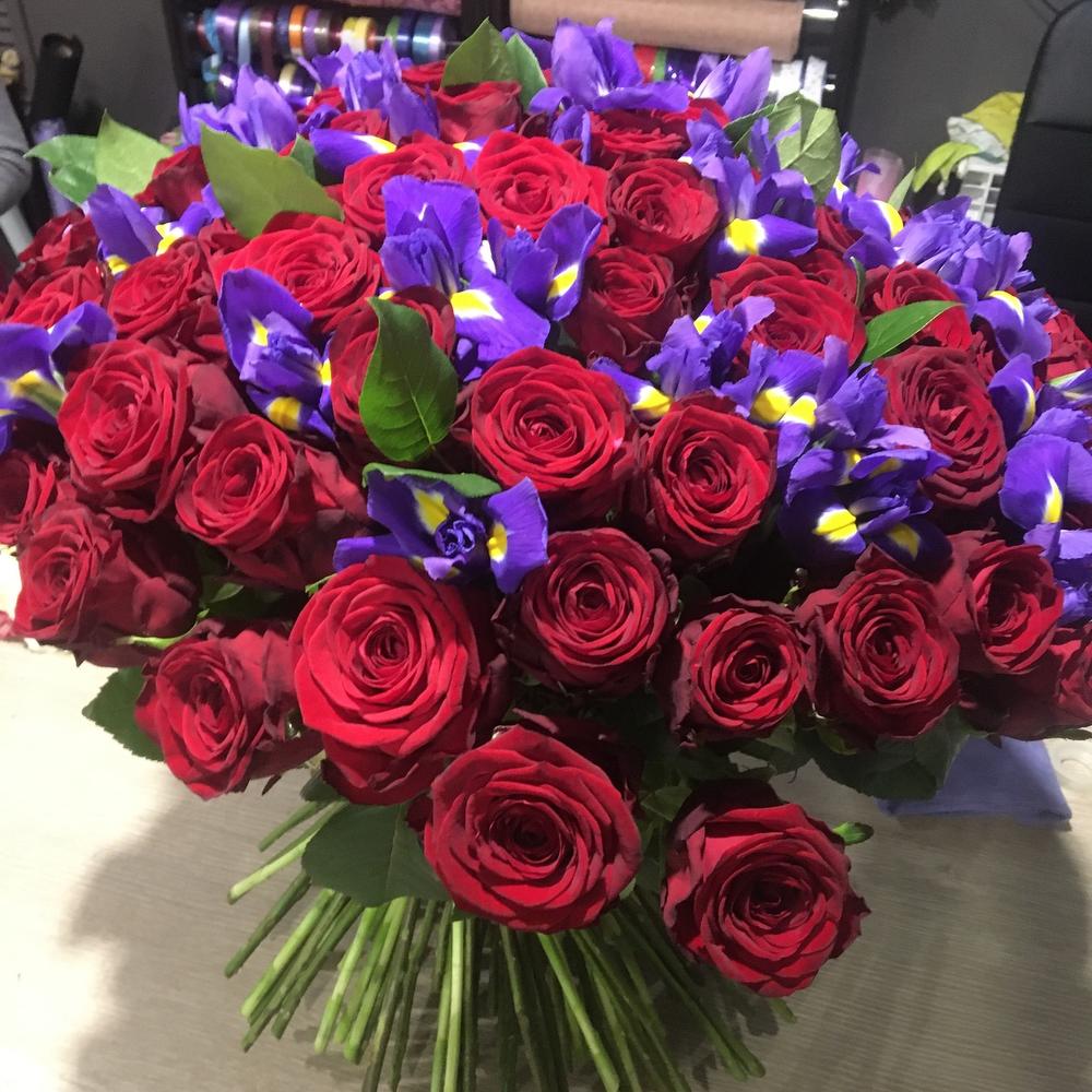 Букет-гигант из роз и ирисов