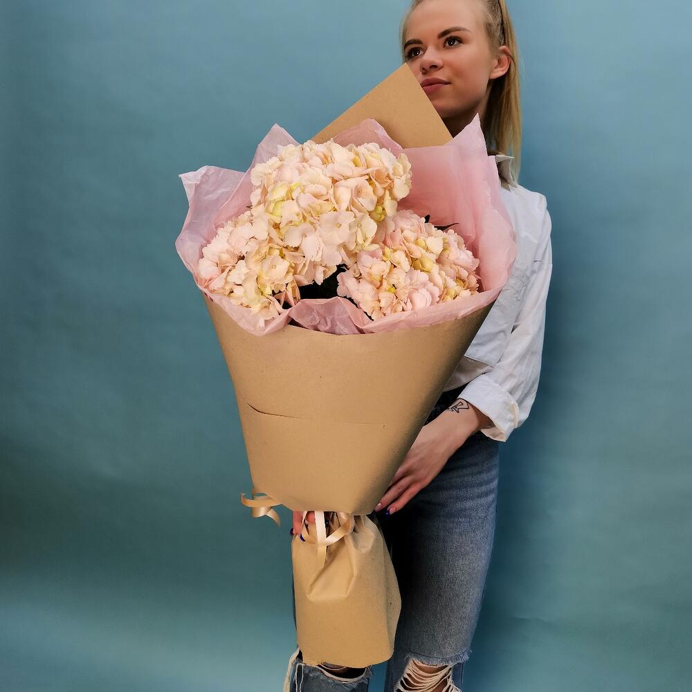 Букет гортензий в дизайнерской упаковке