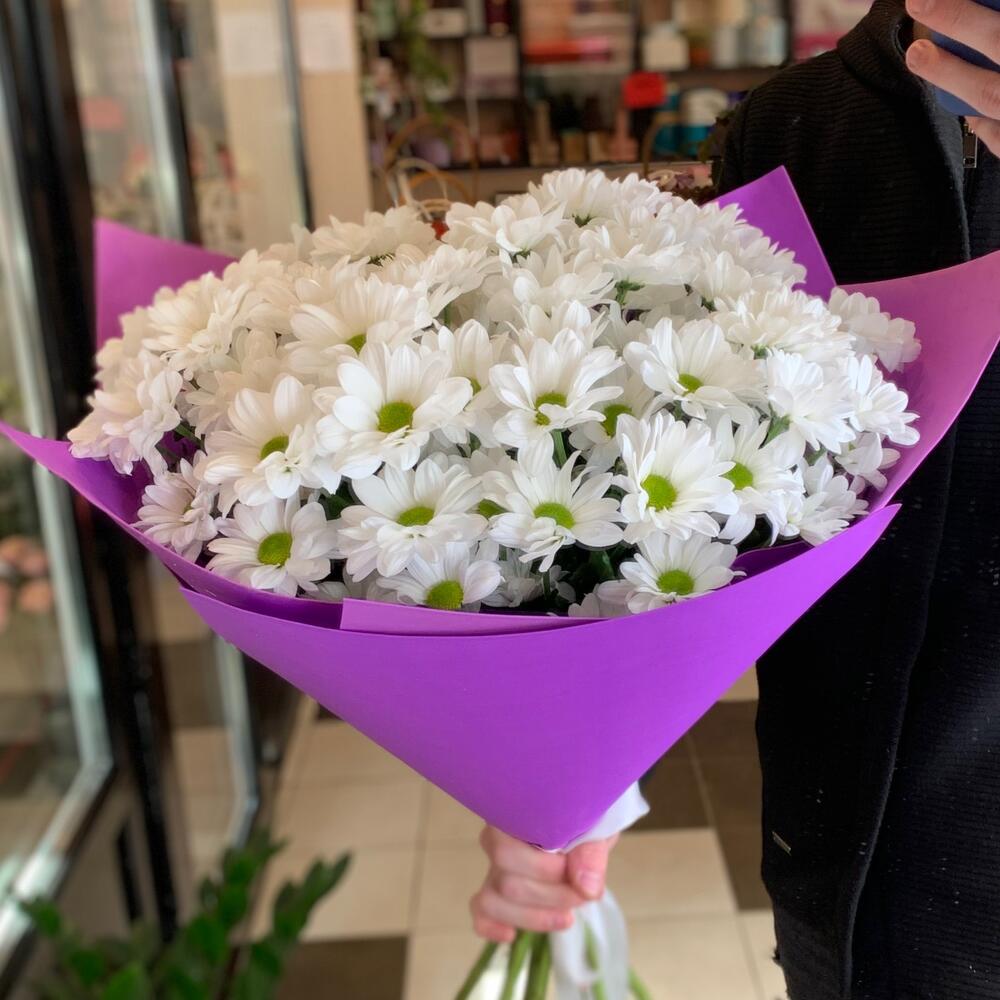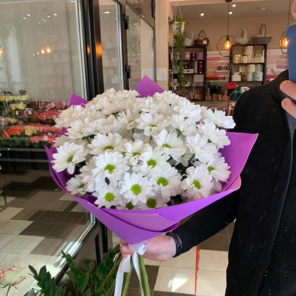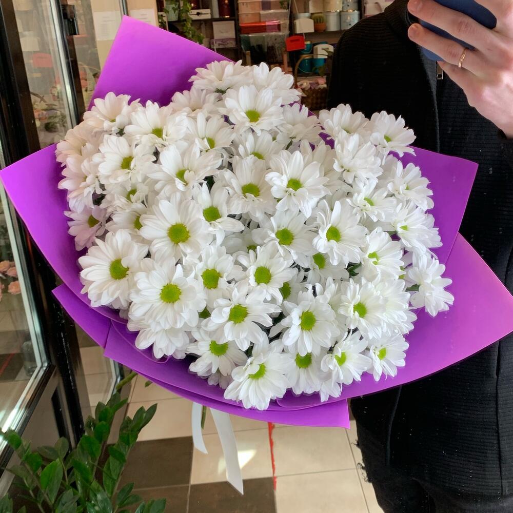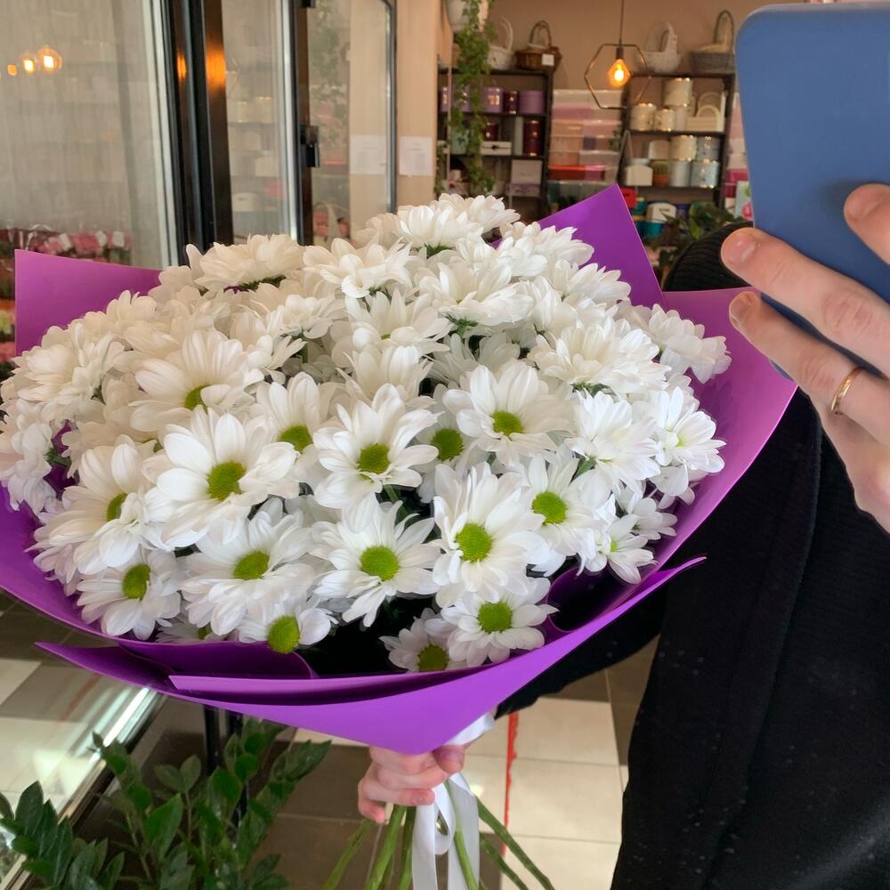 Лента атласная – 1 шт. Хризантема бакарди белая – 11 шт.