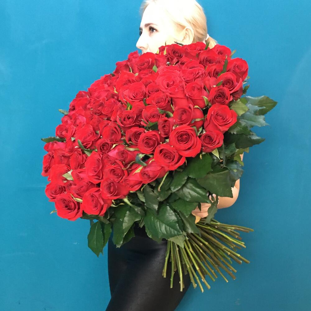 Лента атласная – 3 шт. любовь флориста – 1 шт. роза ред игл 80 см – 101 шт.