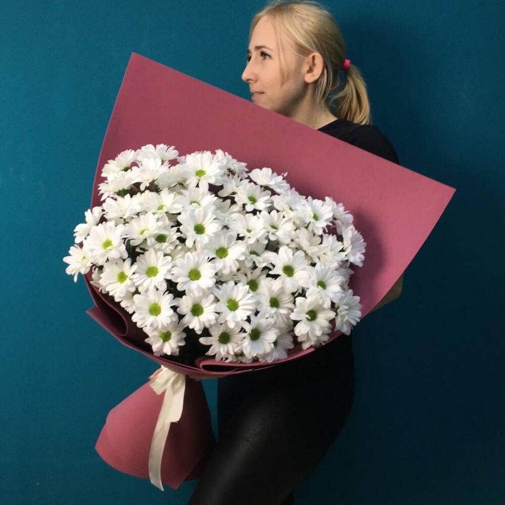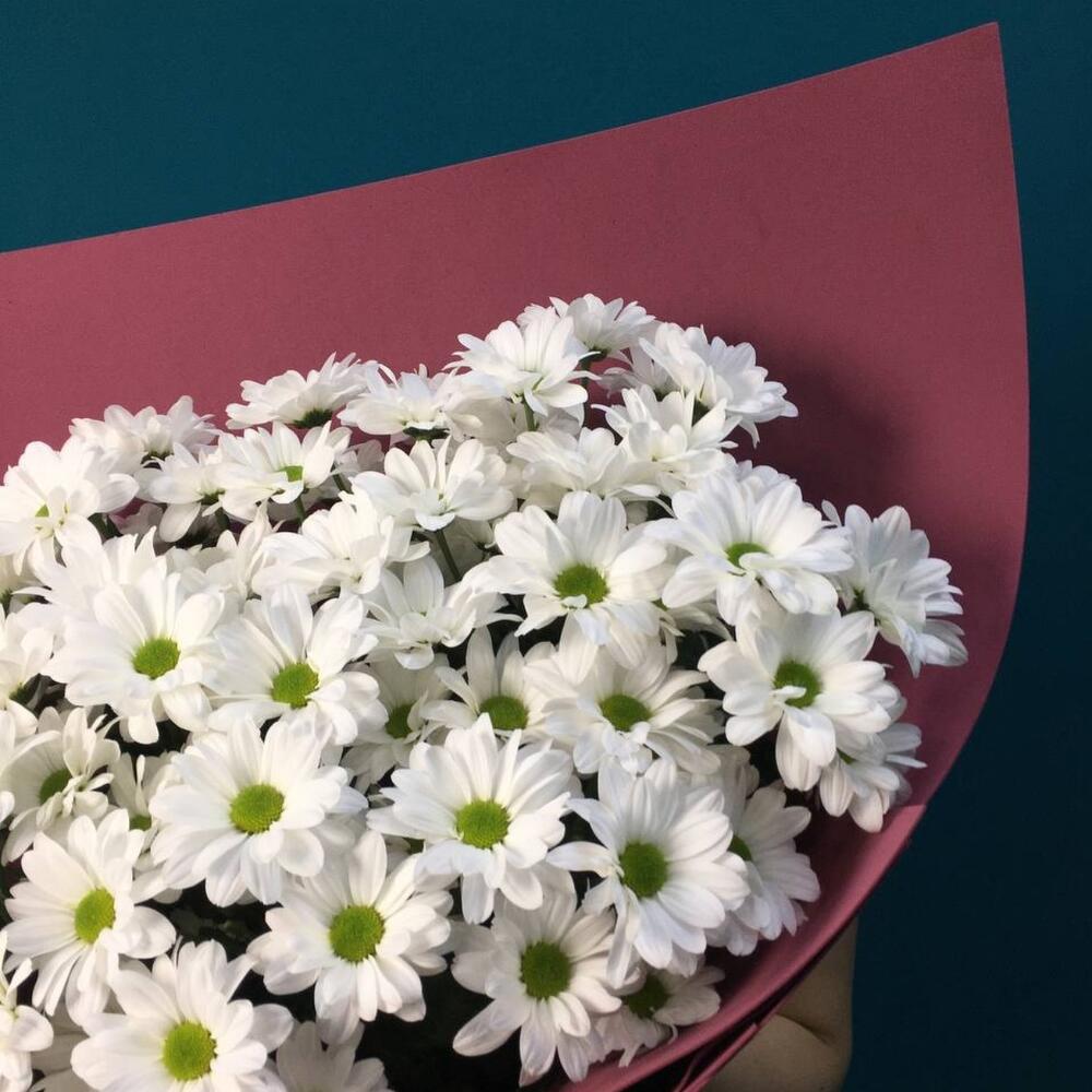 Лента атласная – 1 шт. Хризантема кустовая Бакарди – 11 шт. Фоамиран (упаковка) – 2 шт. любовь флориста (бесплатно) – 1 шт.