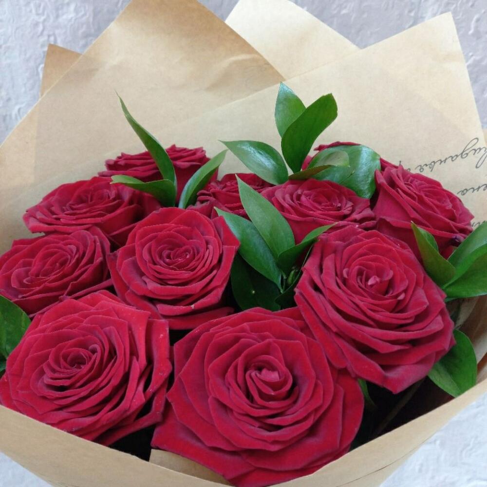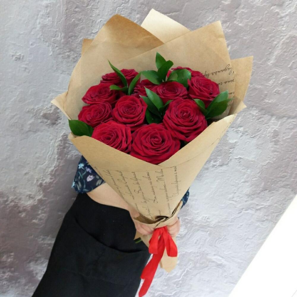 Букет из 11 красных роз в крафте