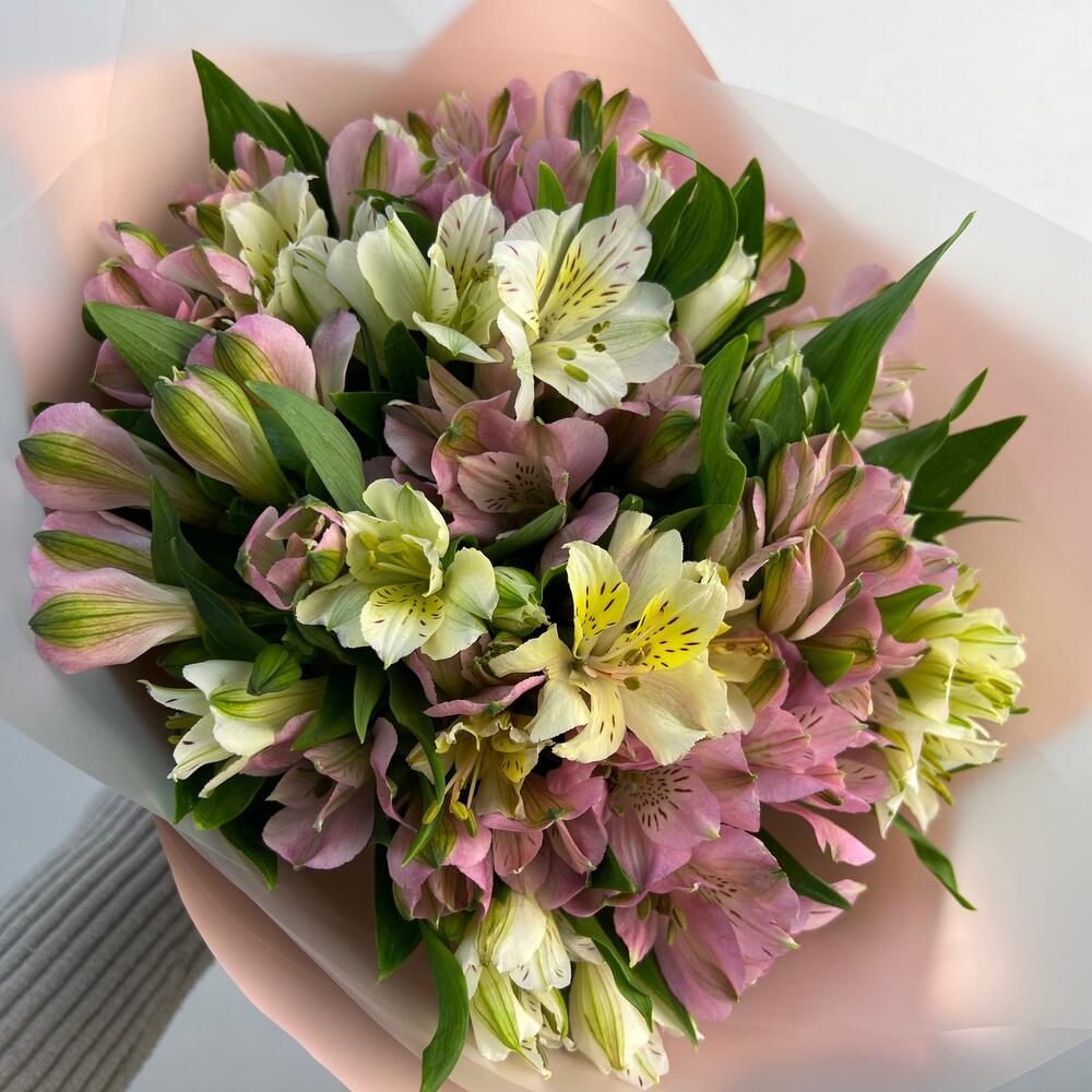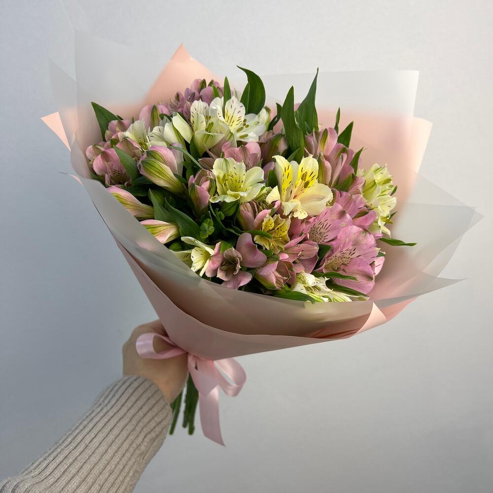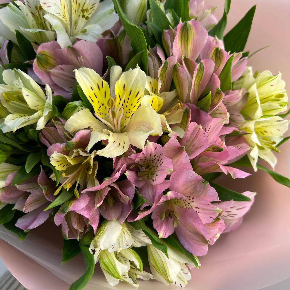 Букет из Микса альстромерий в дизайнерской упаковке.Приятным бонусом к Вашему заказу 🎁:- Аквапак- Средство для продления жизни цветов- Открытка с вашими пожеланиями – Инструкция по уходу за цветами
