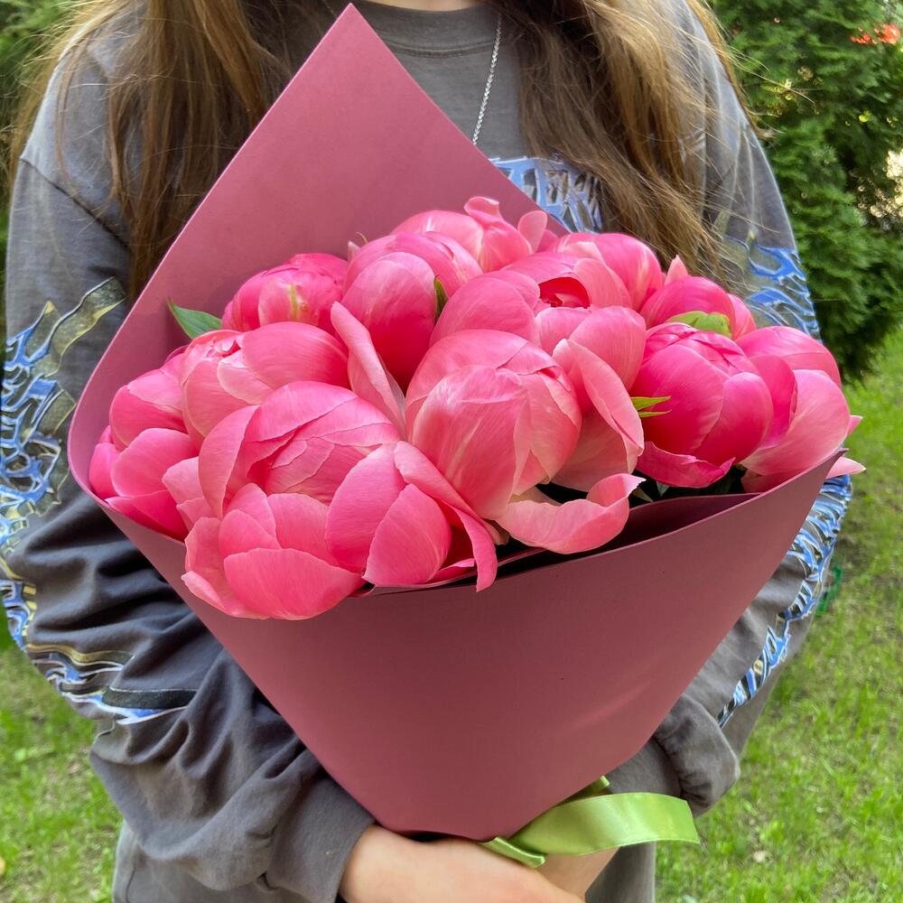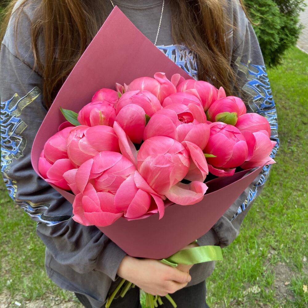 Пион – 15 шт. Лента атласная – 1 шт. Фоамиран (упаковка) – 1 шт.
