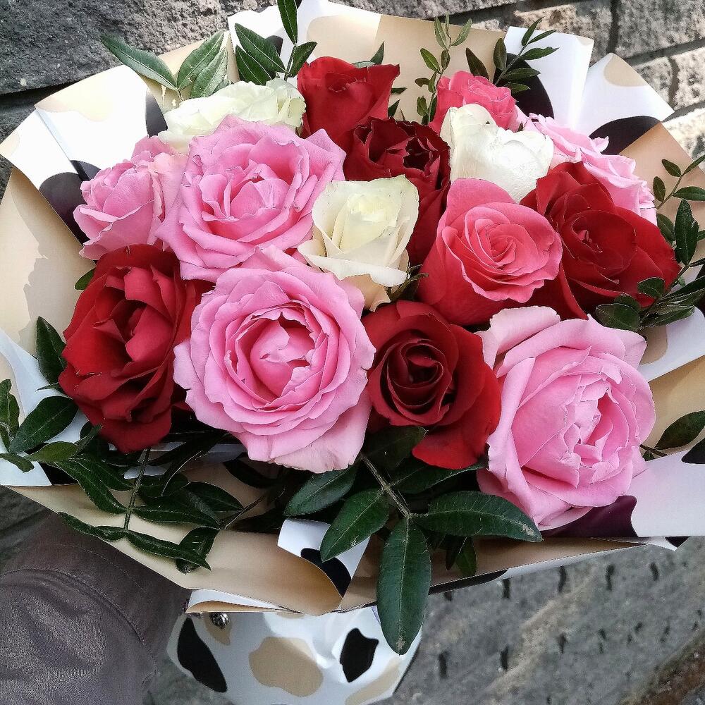 Букет из 15 роз и зелени