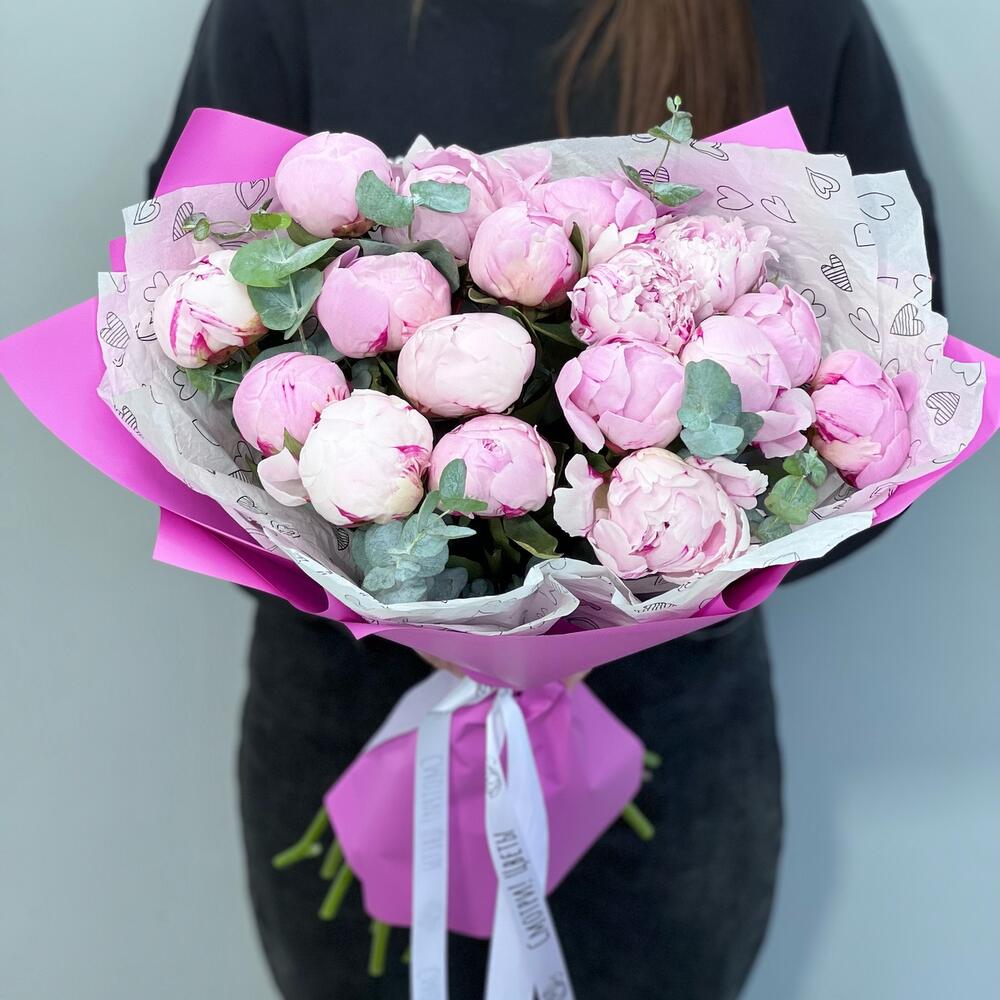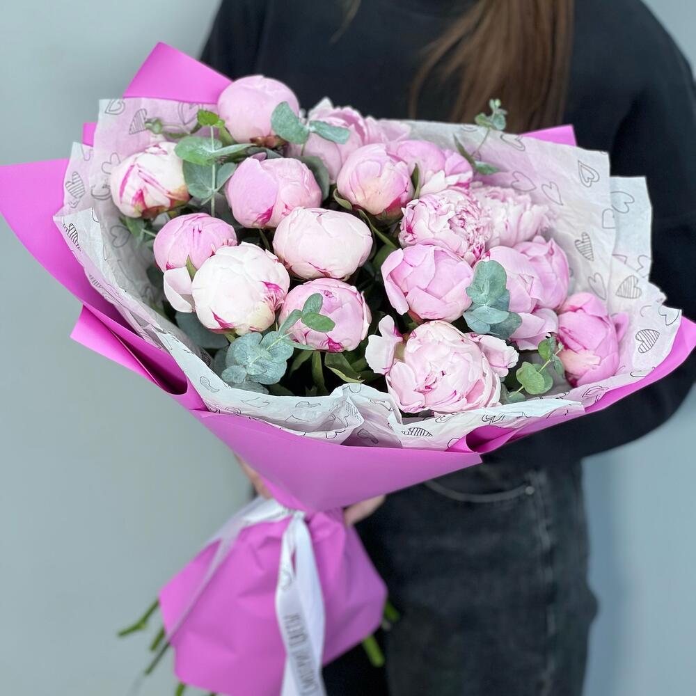 Эвкалипт – 4 шт. Оформление – 1 шт. пионы сара бернар – 17 шт.