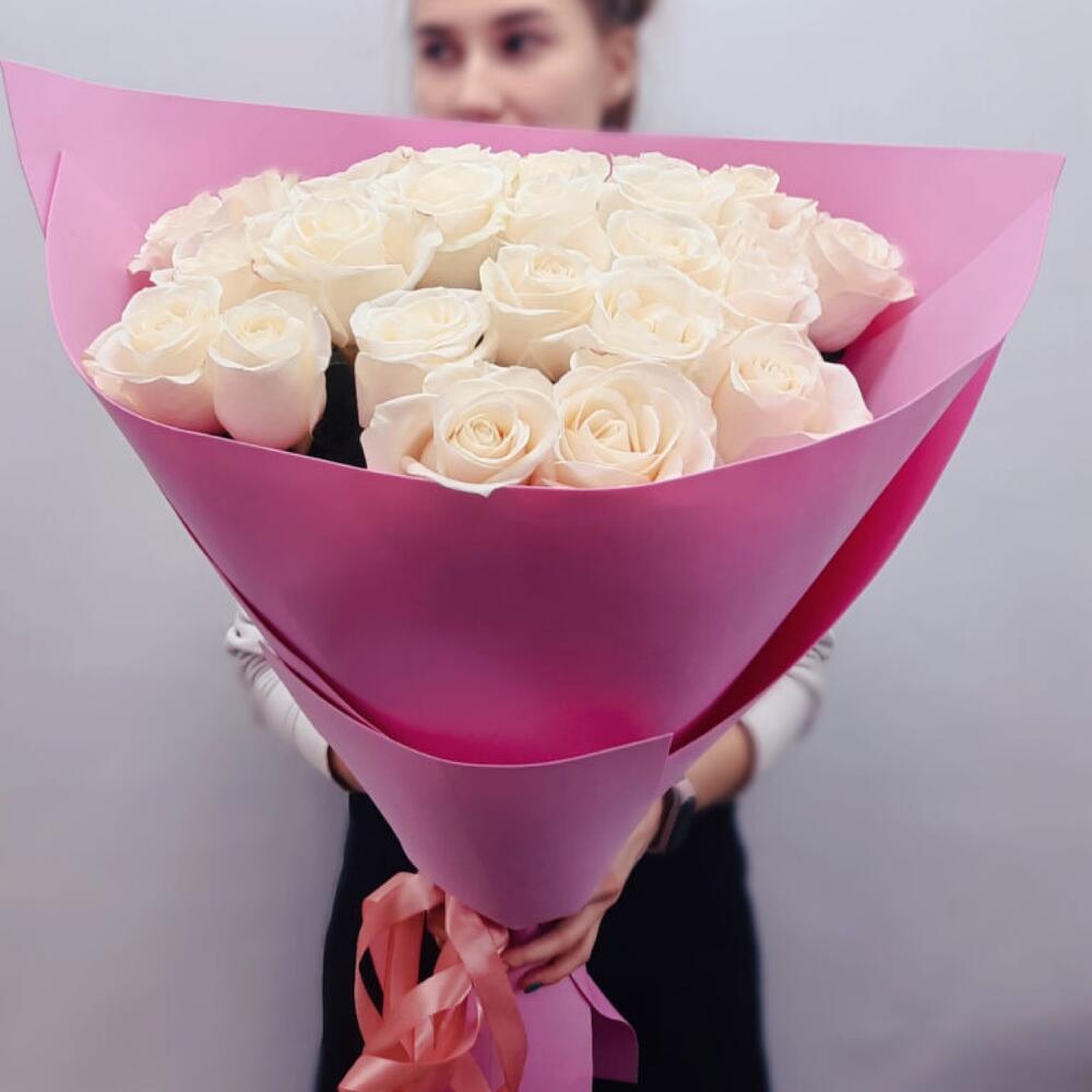 Букет из 25 роз 70 см «Ванильное небо»
