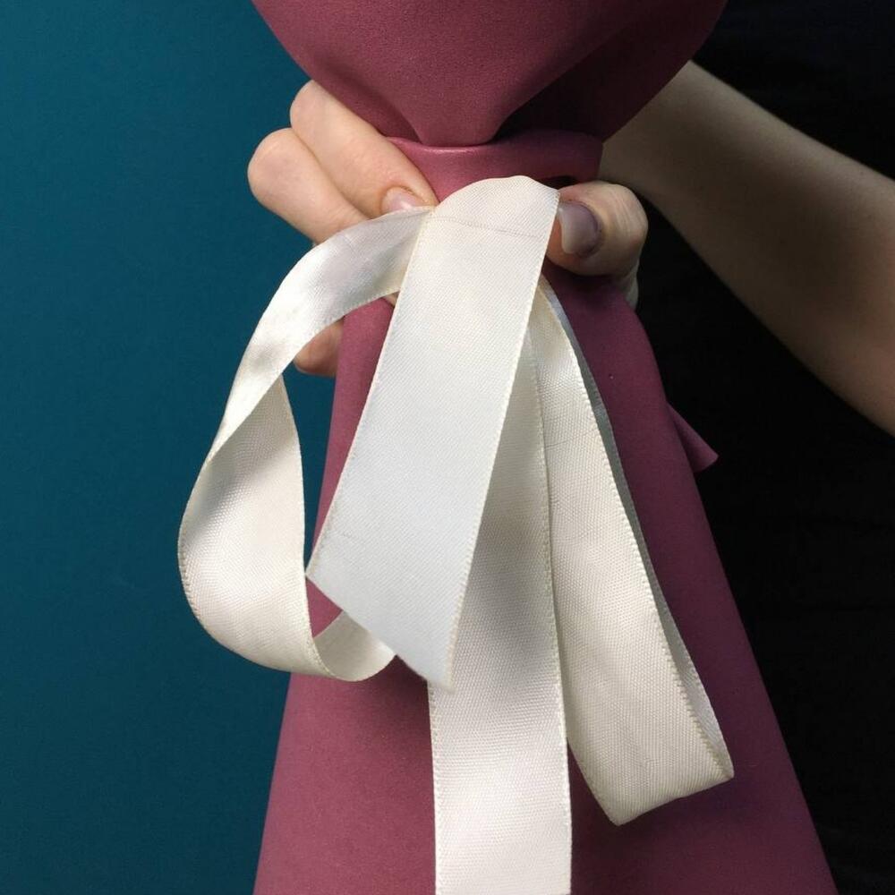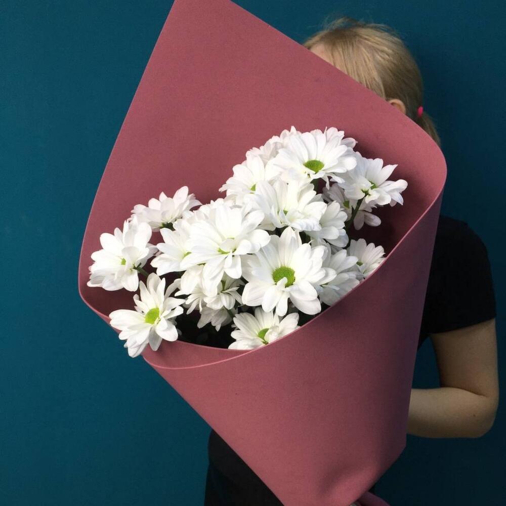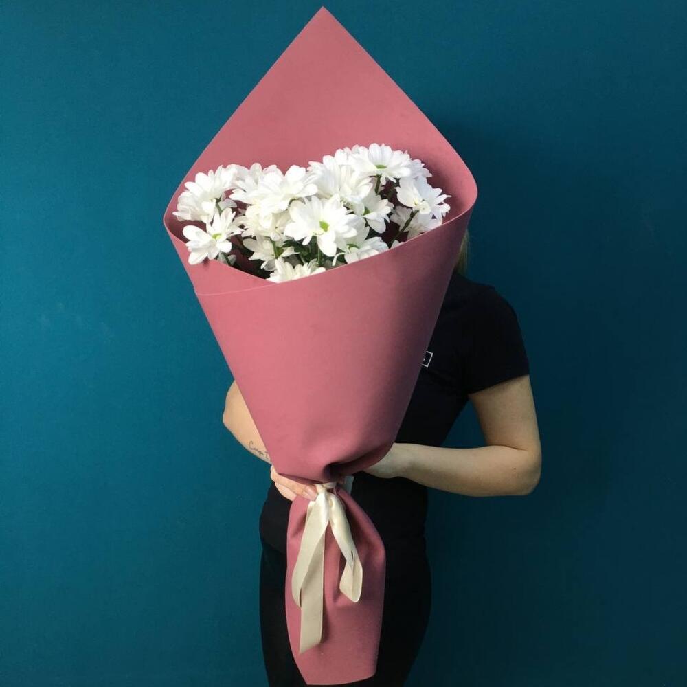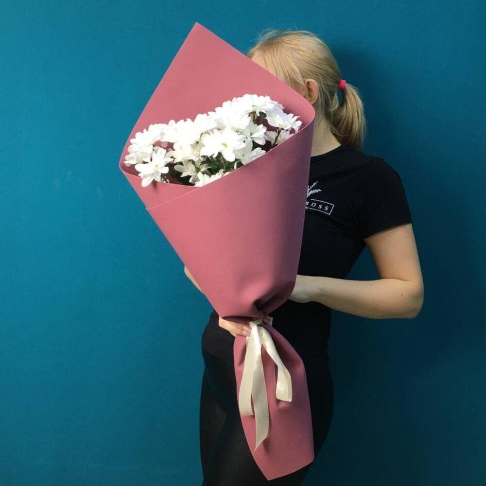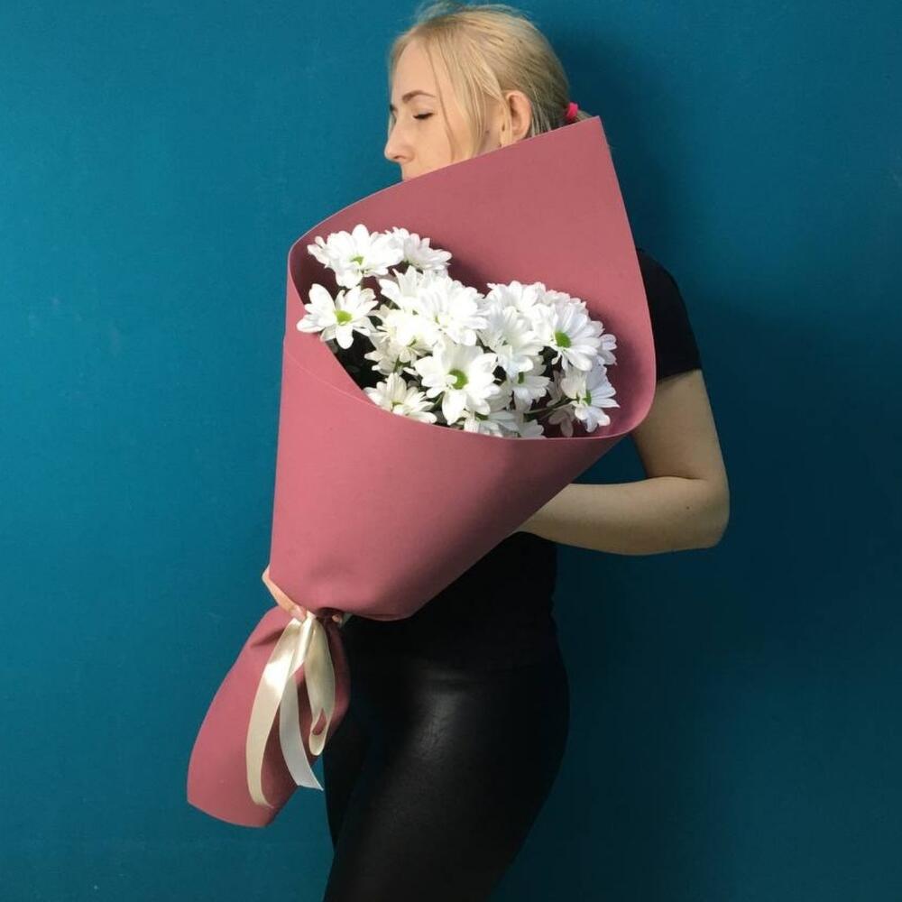 Хризантема кустовая – 3 шт. Лента атласная – 1 шт. Фоамиран (упаковка) – 1 шт. любовь флориста (бесплатно) – 1 шт.