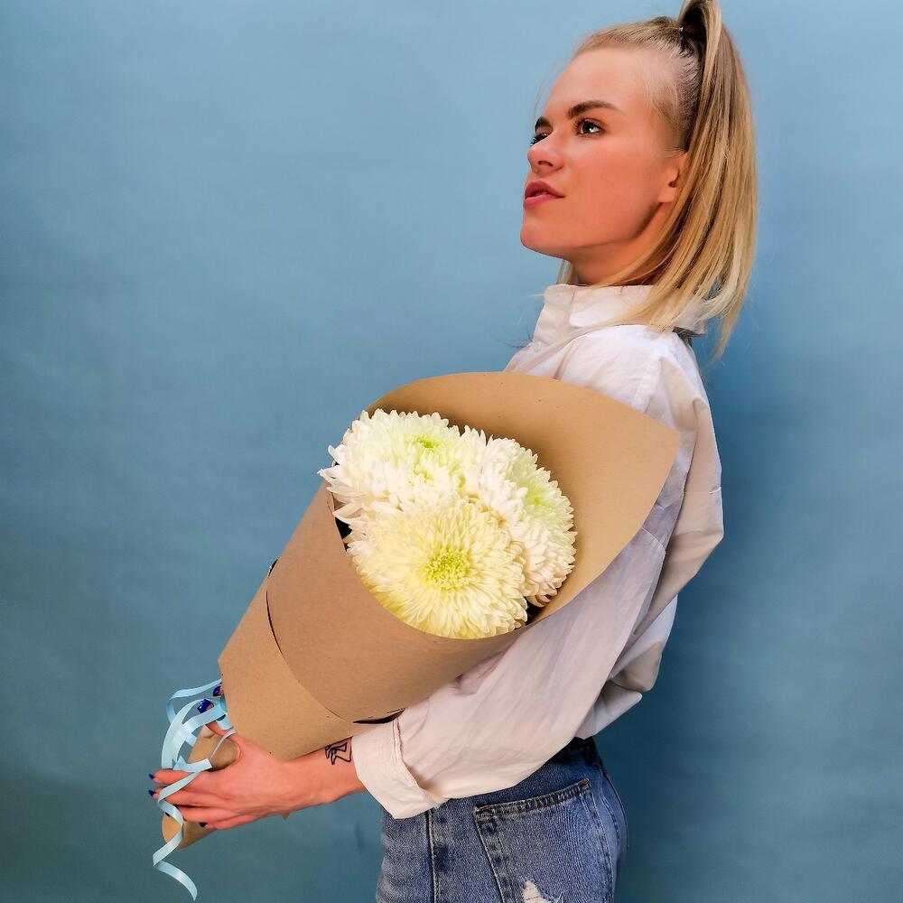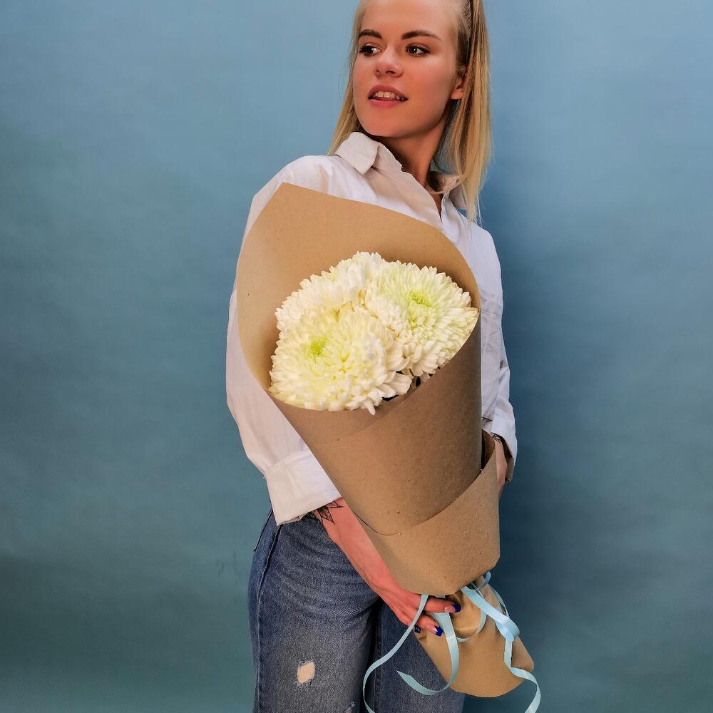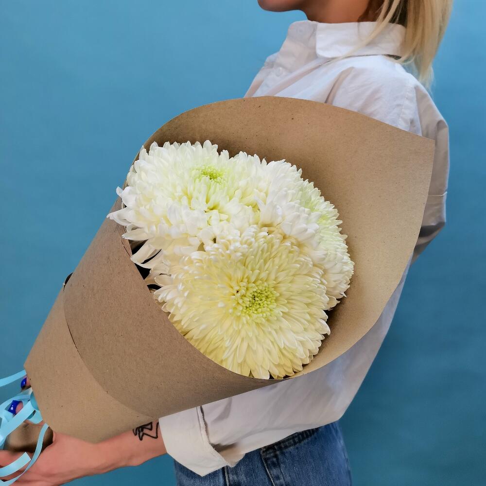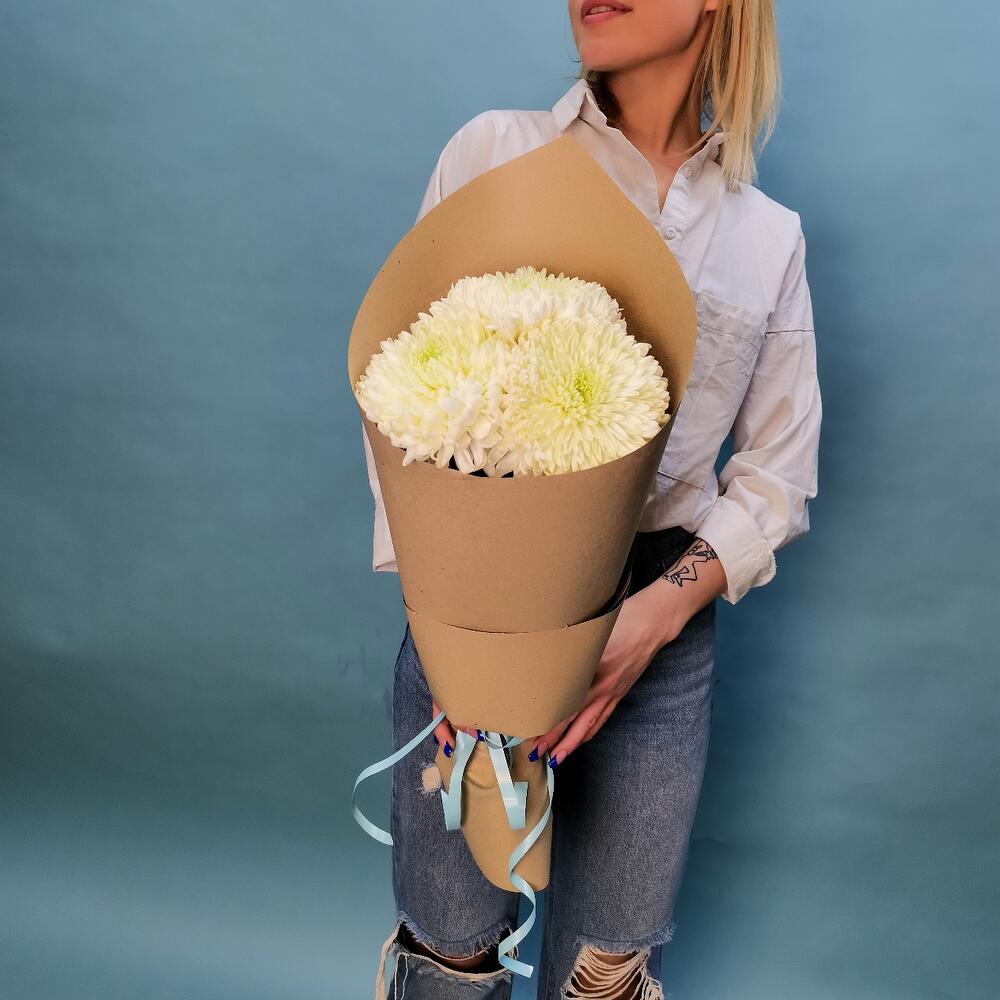 Лента атласная – 1 шт. Хризантема сингл – 3 шт. бумага крафт – 1 шт.