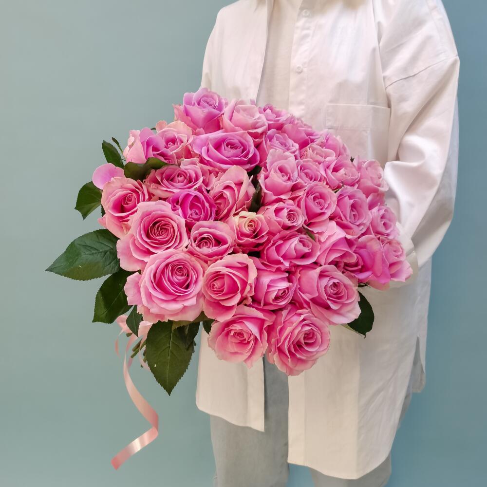 Букет из 35 розовых роз под ленту