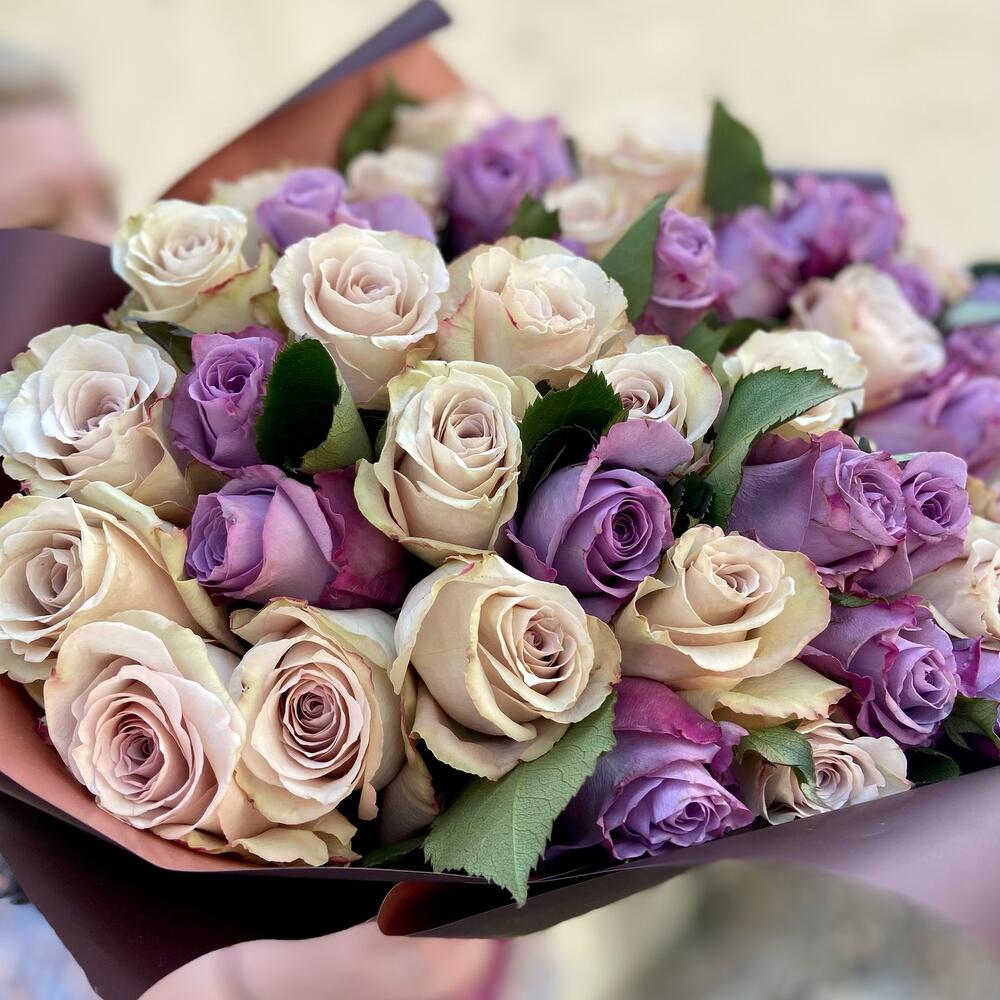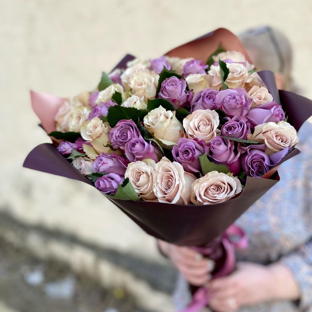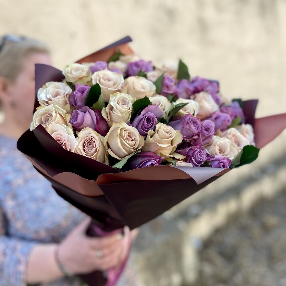 Лента атласная - 1 шт. Матовая пленка - 3 шт. эквадор роза 60 см - 45 шт.