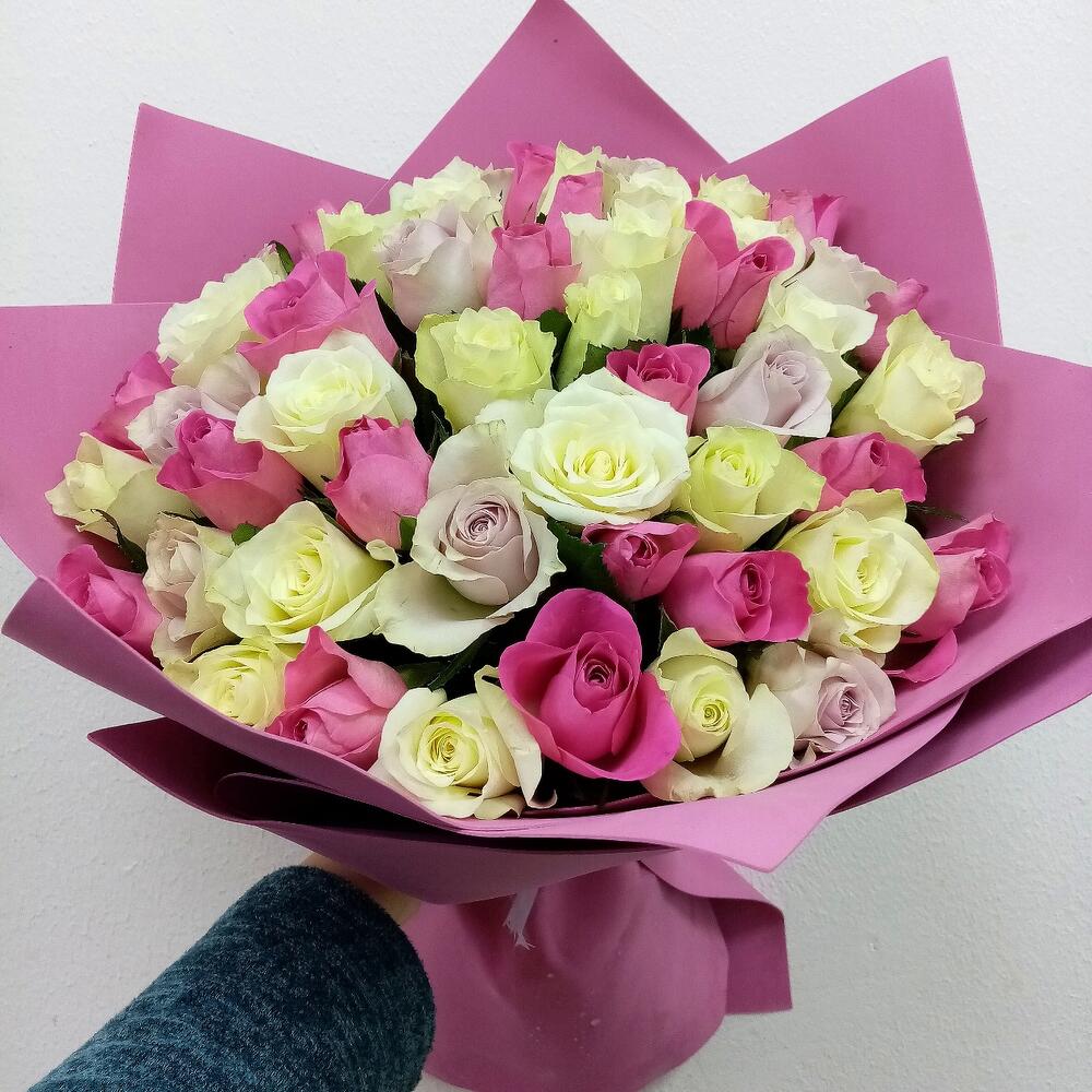 Атласная лента – 2 шт. Роза 50 см – 51 шт. Фоамиран – 2 шт.