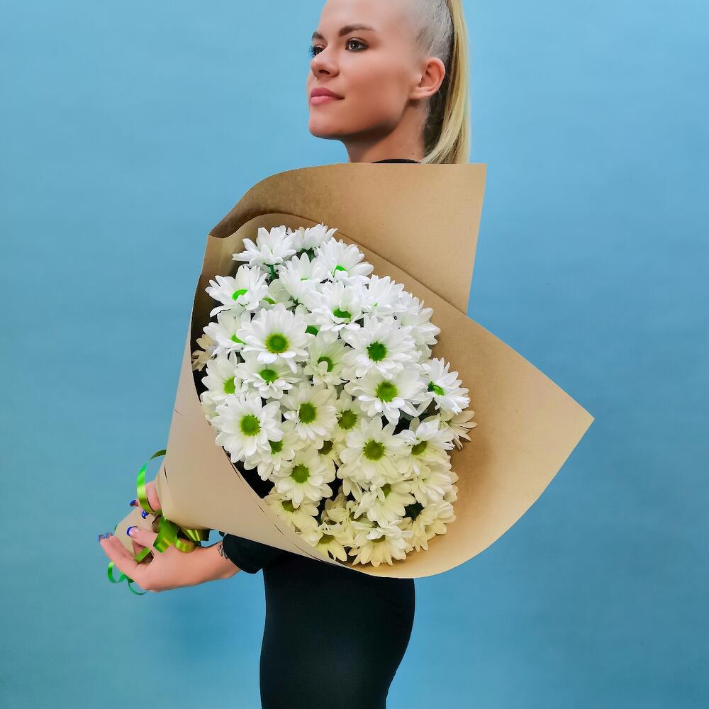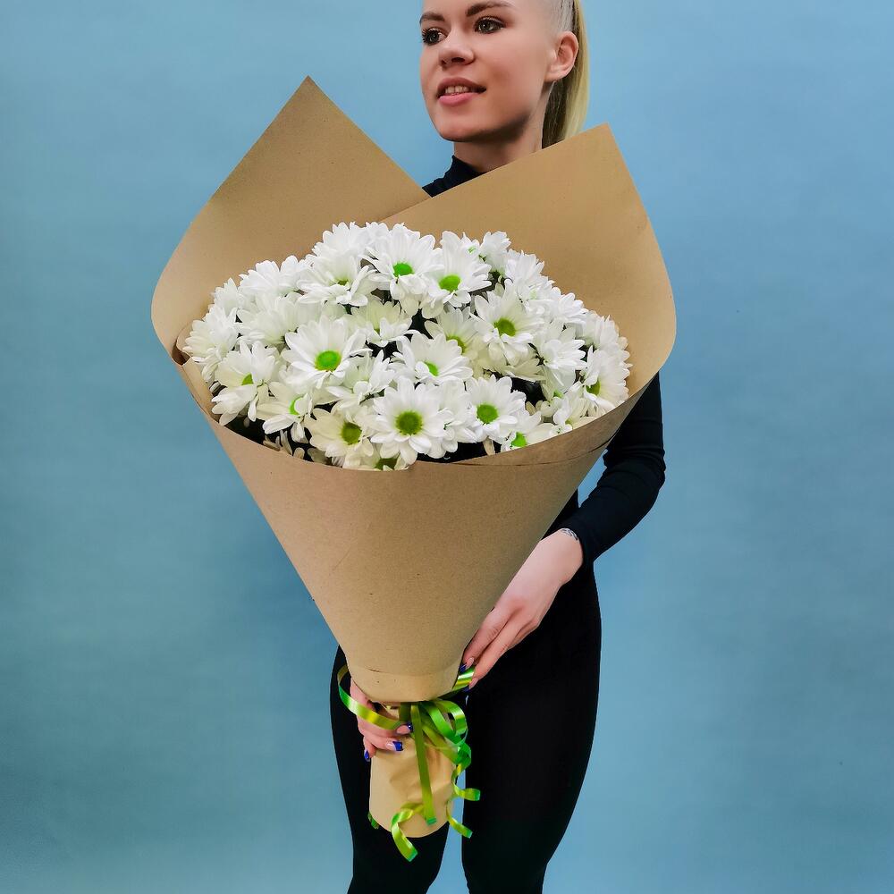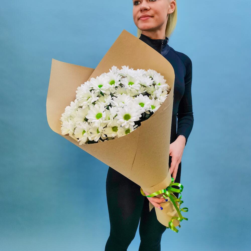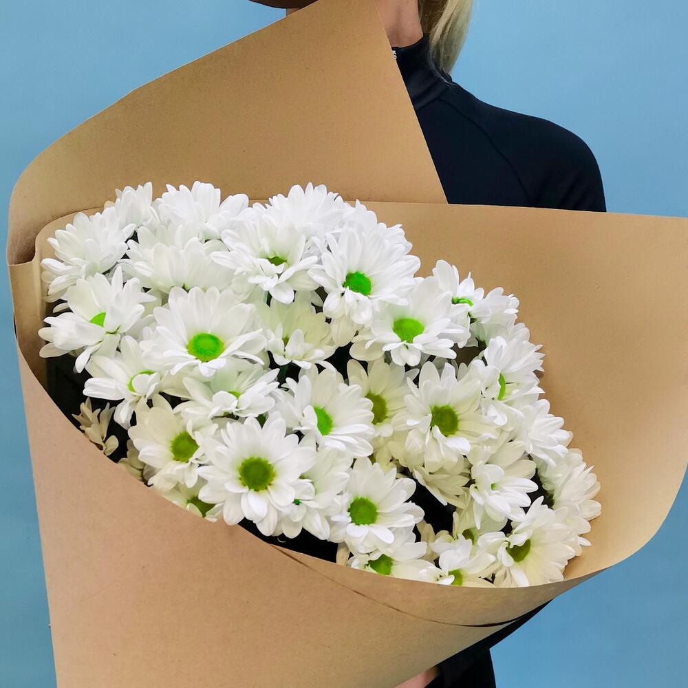 Хризантема кустовая – 7 шт. Лента атласная – 1 шт. бумага крафт – 1 шт.