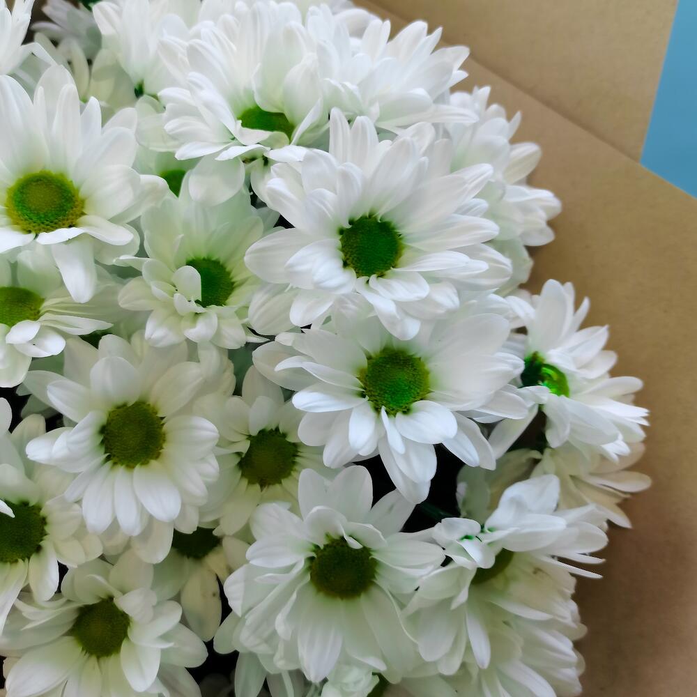 Хризантема кустовая - 7 шт. Лента атласная - 1 шт. бумага крафт - 1 шт.