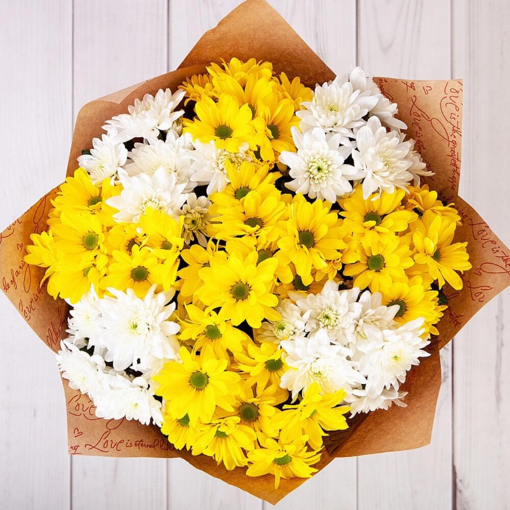 Красивый букет из кустовых ромашковых хризантем в крафте ! Лёгкий и изящный , будет долго радовать получателя своей свежестью . Хризантемы одни из самых стойких Цветов !