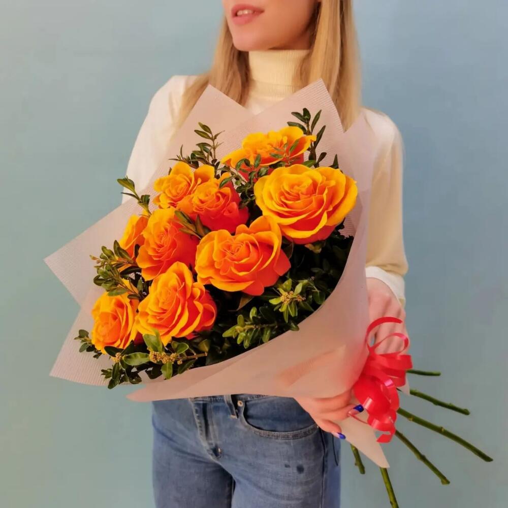 Роза - 9 шт. Лента атласная - 1 шт. Фисташка - 5 гр. Пленка матовая - 2 шт.